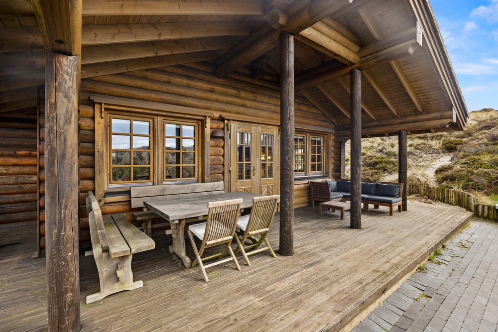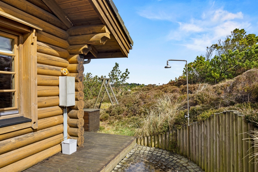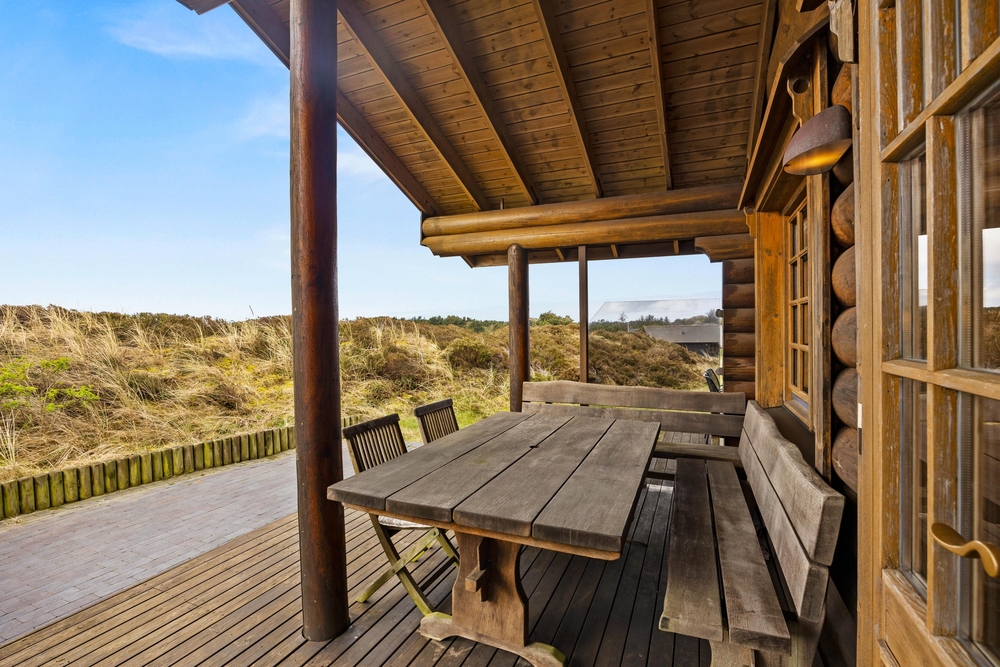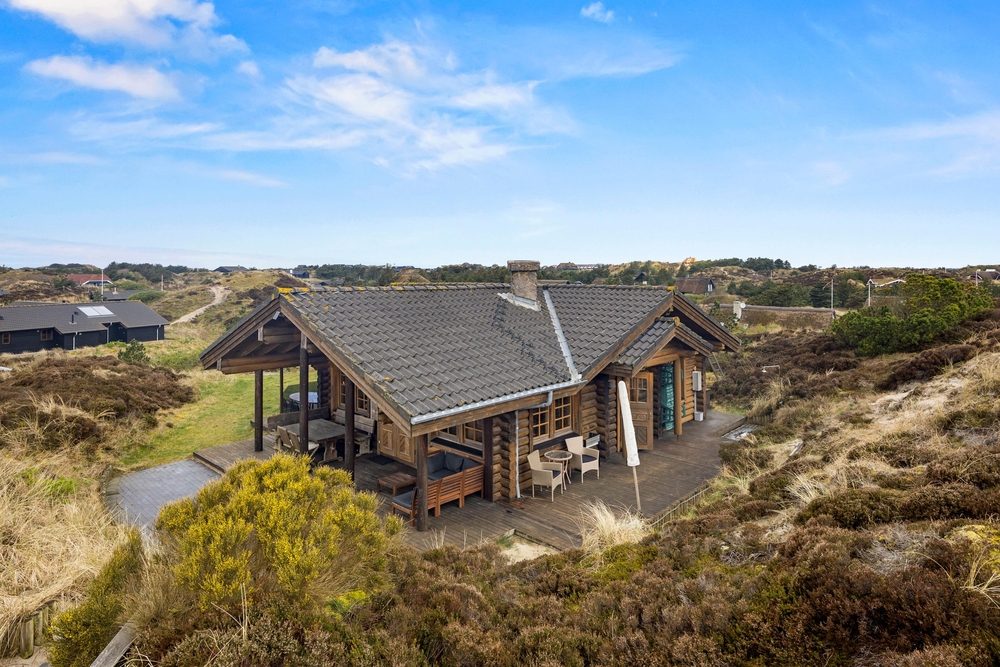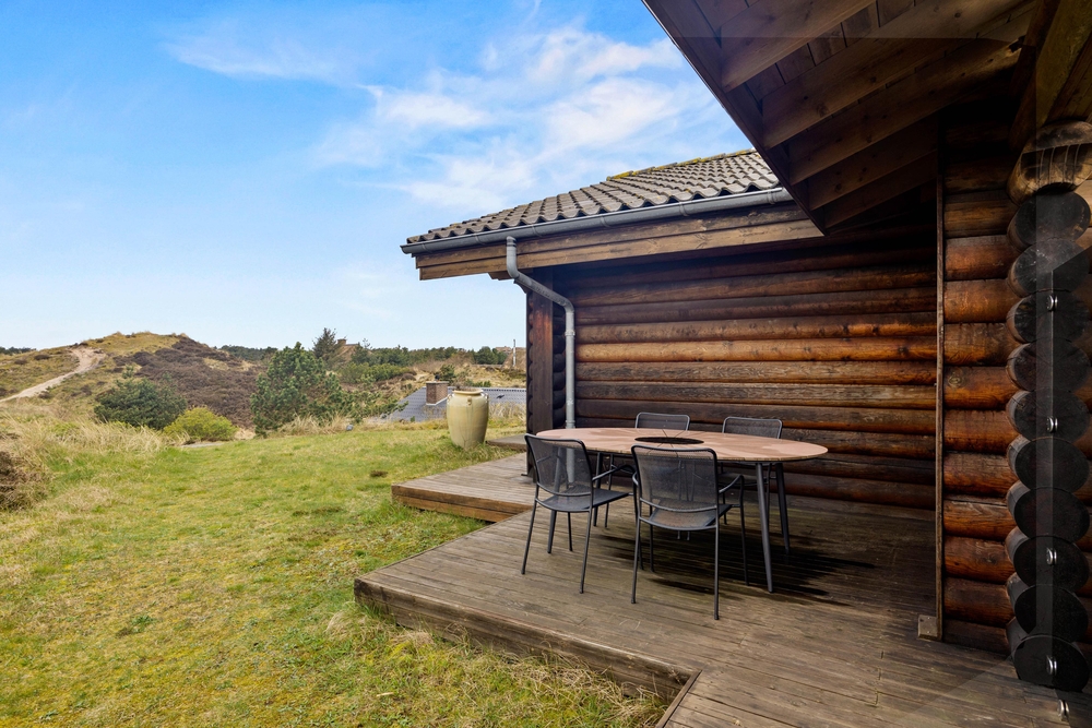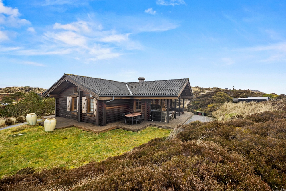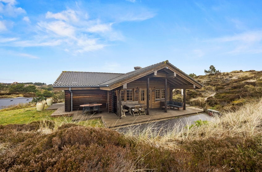 Seid ihr auf der Suche nach ein ganz speziellen Sommerhaus, dann ist diese Blockhütte mit einer Größe von 90m² genau das Richtige. Das Ferienhaus bietet Platz für 4 Personen und liegt so in der Heidelandschaft, dass ihr abgeschirmt auf der Terrasse sitzen könnt.