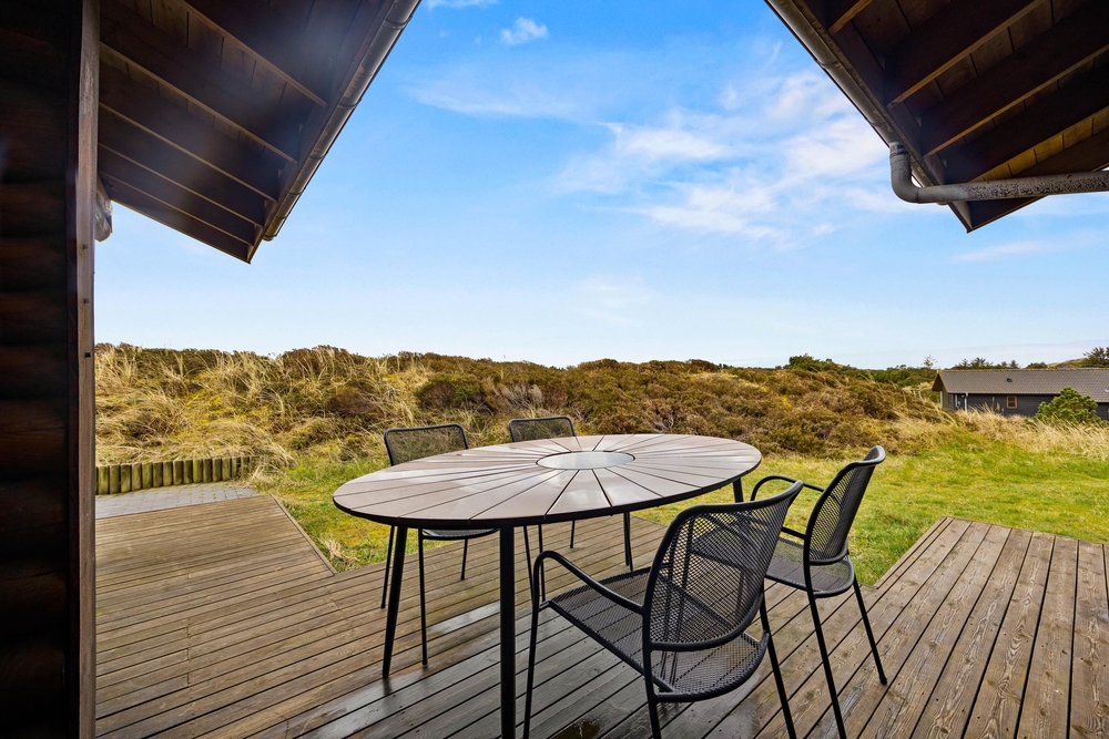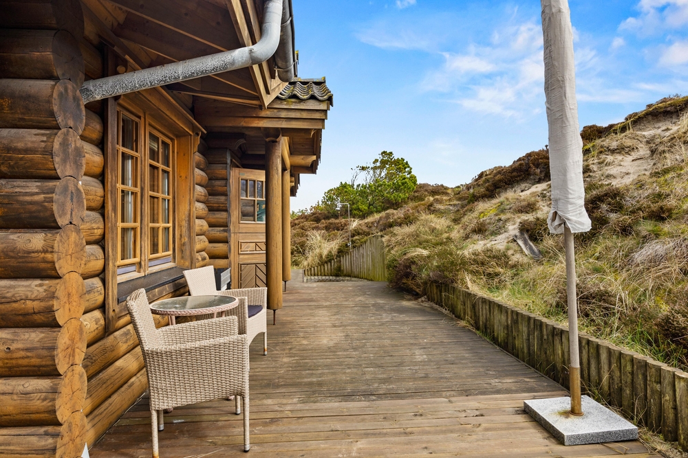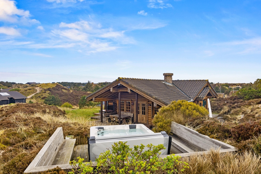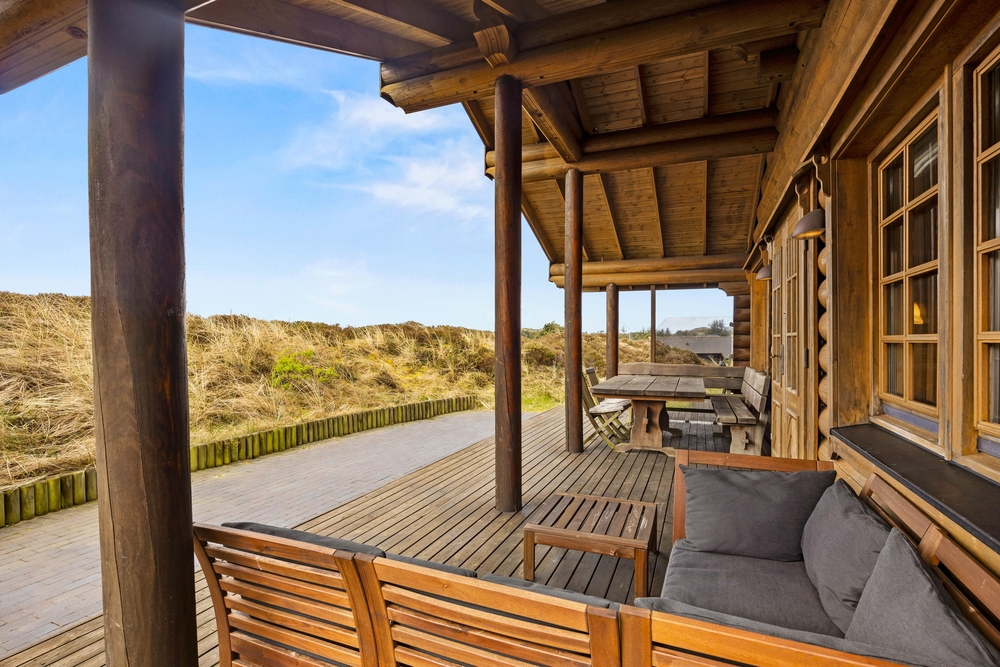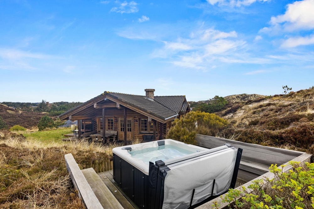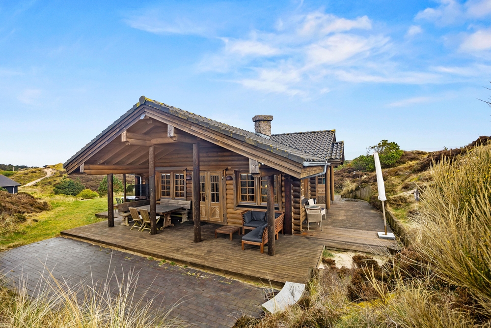 Seid ihr auf der Suche nach ein ganz speziellen Sommerhaus, dann ist diese Blockhütte mit einer Größe von 90m² genau das Richtige. Das Ferienhaus bietet Platz für 4 Personen und liegt so in der Heidelandschaft, dass ihr abgeschirmt auf der Terrasse sitzen könnt.