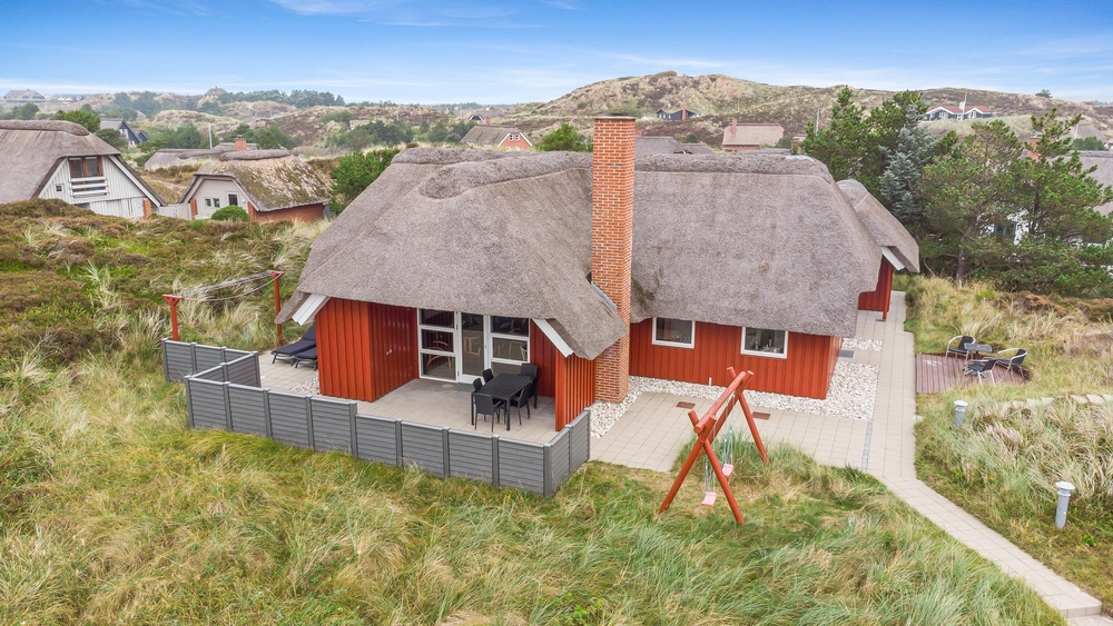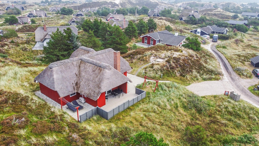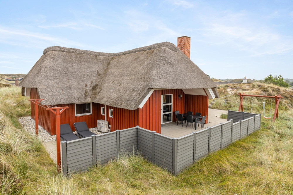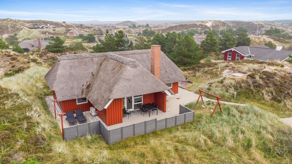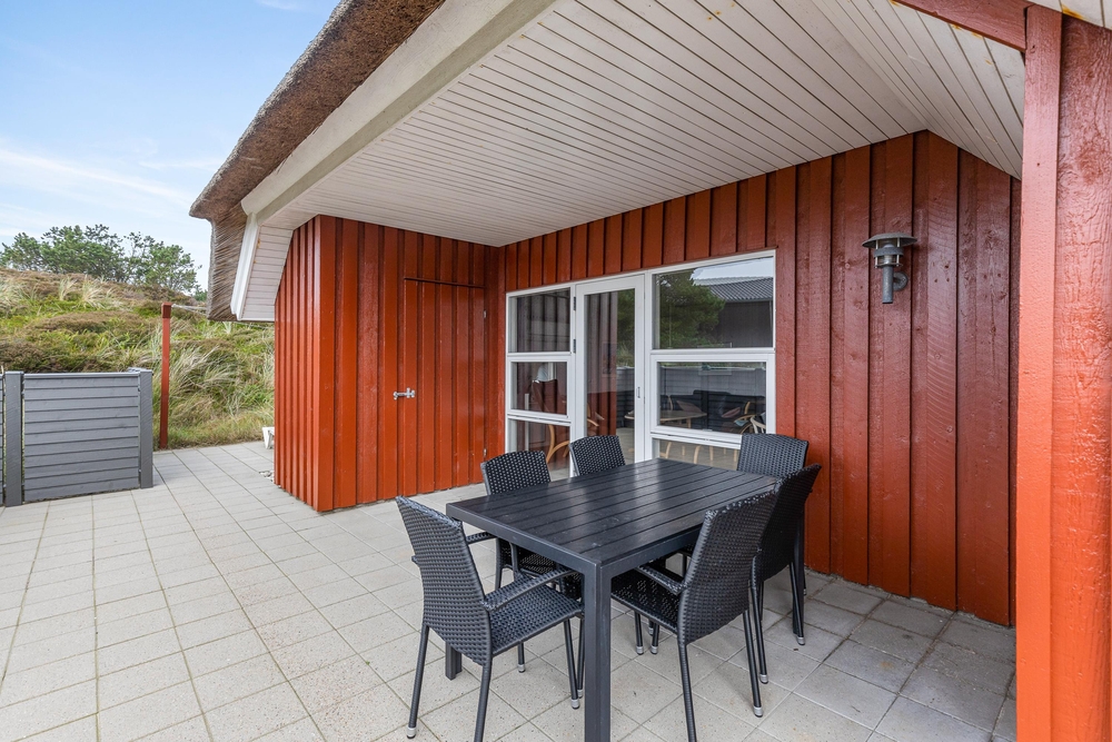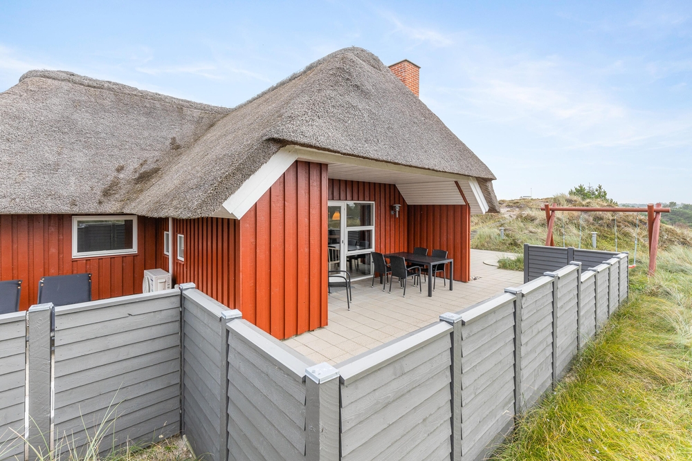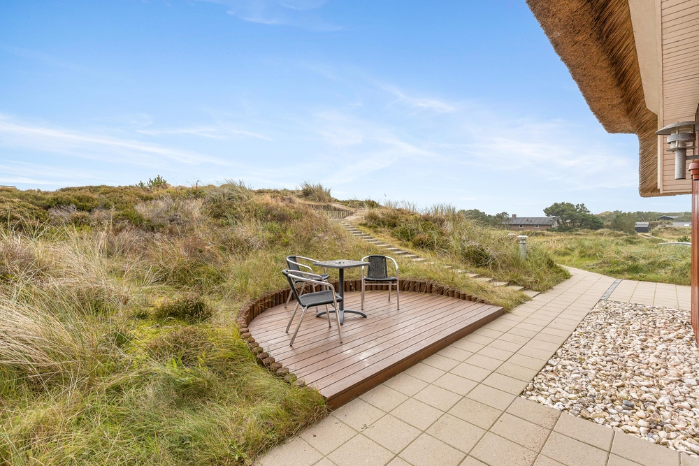 Rund um euer Ferienhaus hier auf Hjelmevej 59 findet ihr mehrere gute und geschützte Sitzmöglichkeiten auf den verschiedenen Terrassen.