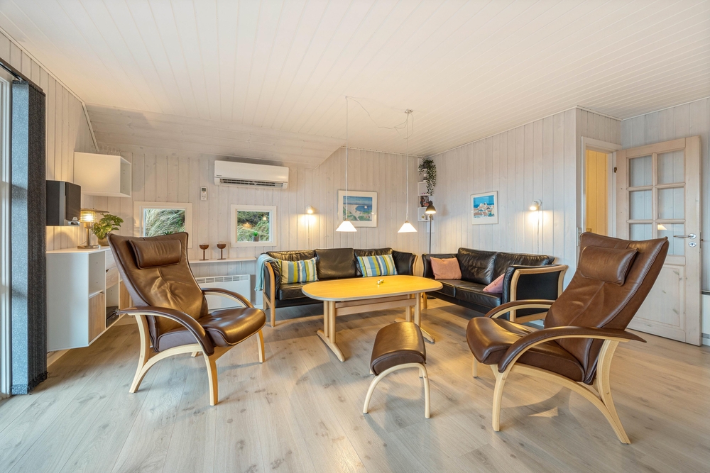 Auf über 100 Quadratmetern stehen euch in diesem schönen Ferienhaus, welches sich unter Reet duckt, ausreichend Platz für die ganze Familie zur Verfügung. Dank der 3 Schlafzimmer und der beiden Badezimmer, welche auch über eine Fußbodenheizung verfügen, bietet sich dieses Ferienhaus auch gut für einen Urlaub mit Freunden an.
