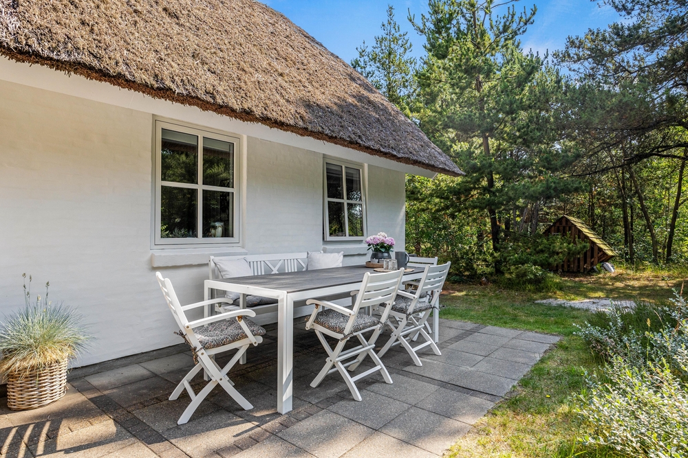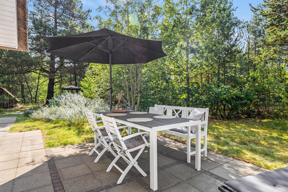 Genießt die Schönheit der Natur in Houstrup von einer der 3 Terrassen des Hauses. Sei es die Sonne auf der offenen Terrasse einzufangen, auf der abgeschirmten Terrasse zu entspannen oder ob ihr unter der überdachten Terrasse speisen möchtet, ihr findet immer den perfekten Ort, um die frische Luft und die Ruhe der Umgebung zu genießen. Das Ferienhaus liegt auf einem großzügigen Naturgrundstück, welches euch eine gute Privatsphäre und Raum zum Entspannen bietet.