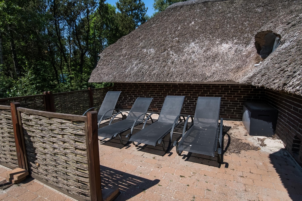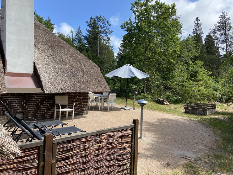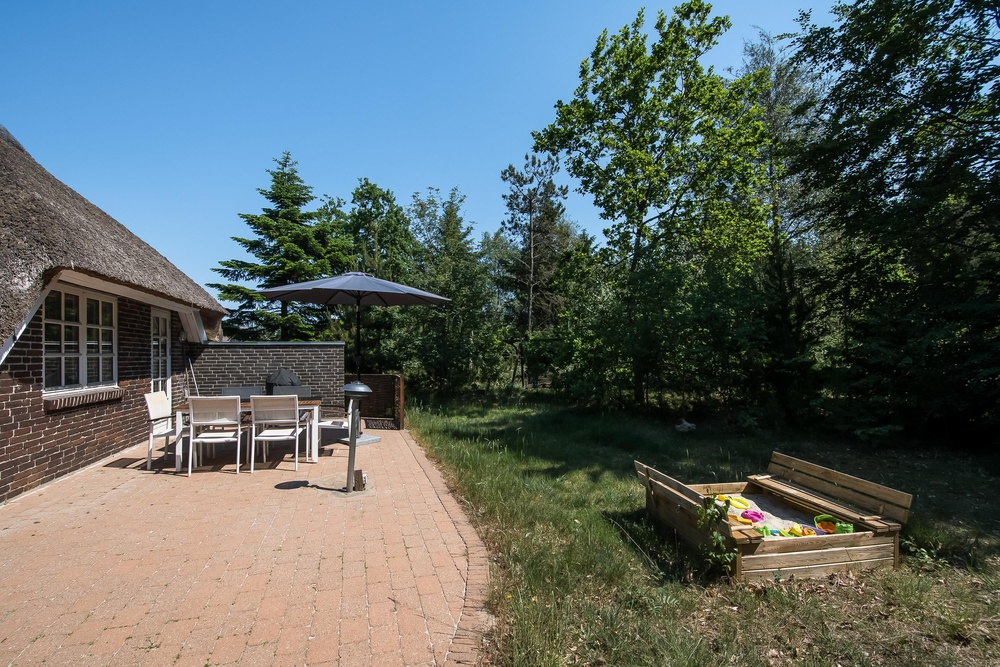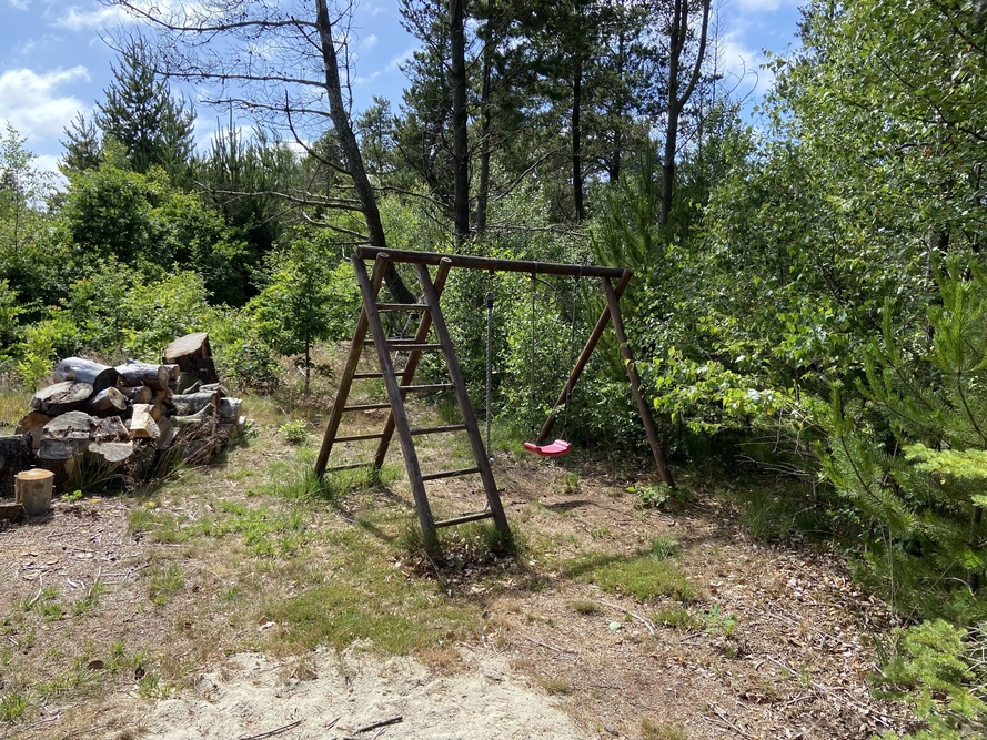 Auf der durch Bäume windgeschützten, einladenden Terrasse lässt es sich fantastisch verweilen. Es sind sowohl Liegestühle wie auch Gartenmöbel vorhanden, so dass einem leckeren Kaffeetrinken oder einem langen Grillabend nichts im Wege steht. Für die Kinder sind neben Kinderbett und Hochstuhl im Haus, ein Sandkasten und eine Schaukel im Freien aufgebaut. Zudem lässt es sich auf dem Naturgrundstück mitten im Wald auch gut Fangen und Fussball spielen sowie in der Umgebung spazieren gehen.