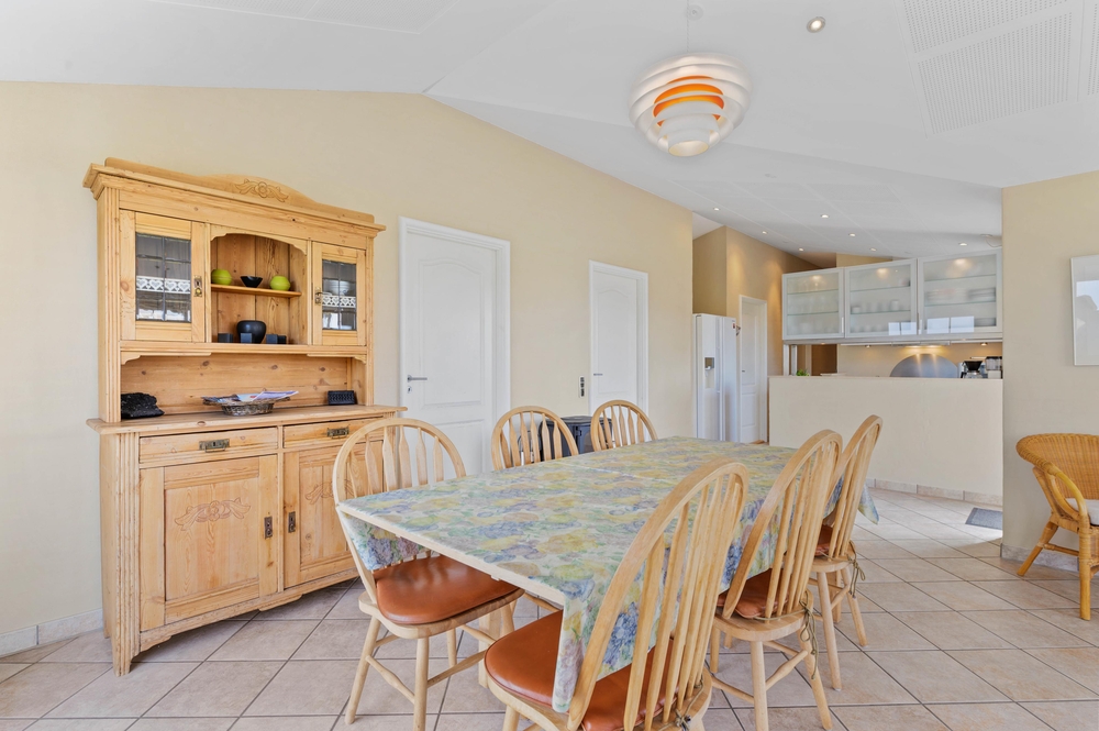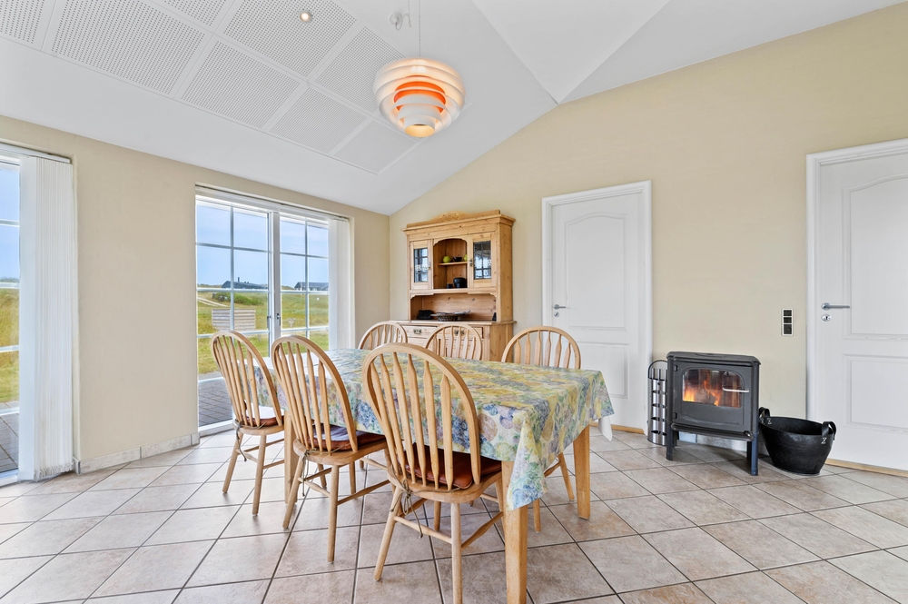 Das Ferienhaus bietet auf insgesamt 120 m2 ausreichend Platz, ist dank der vielen, zum Teil bodentiefen Fenster hell und freundlich. Im Wohnbereich, welcher Wohn-, Esszimmer und die Küche miteinander verbindet, gibt es viel Platz und Raum zum Beisammensein bei einem lustigen Spiel, einem leckeren Mittagessen oder einem guten Film. Der Holzofen im Wohnzimmer vervollständigt die Urlaubsatmosphäre mit seiner Wärme und dem Knistern im Hintergrund. Alternativ steht euch eine moderne Wärmepumpe zur Verfügung, welche effektiv für die von euch gewählte Temperatur sorgt.
