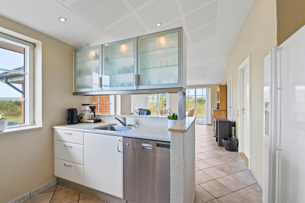 Dieses Ferienhaus liegt im nördlichen Teil von Søndervig, in einem schönen, ruhigen Ferienhausgebiet. Die beliebte Urlaubsregion am Ringkøbing Fjord hat das ganze Jahr über viel zu bieten, von langen Spaziergängen an der frischen Luft bis hin zu diversen Aktivitäten. Unternehmt Ausflüge an den Strand und die Nordsee, welche nur 300 Meter vom Haus entfernt liegt, wo ihr stundenlang mit euren Kindern und eurem Hund spazieren gehen oder einfach nur nach Muscheln, Bernstein oder Steinen mit Loch suchen könnt.