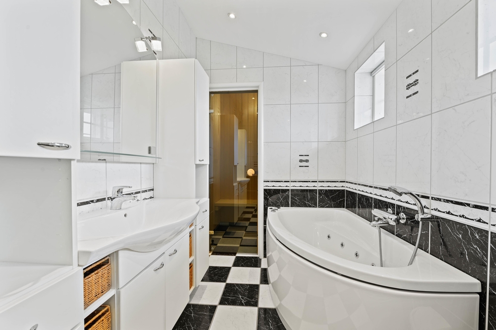 Insgesamt sind 3 Schlafzimmer und 2 Badezimmer vorhanden. Eines der Badezimmer verfügt über einen Whirlpool und eine Sauna, in denen ihr euch so richtig entspannen könnt. Sowohl Kinder als auch Erwachsene werden es lieben, sich im Whirlpool und in der Sauna nach einem langen Tag an der frischen Luft, aufzuwärmen. Beide Bäder verfügen über eine Fußbodenheizung, sodass ihr euch auch über kalte Füße keine Gedanken machen müsst.