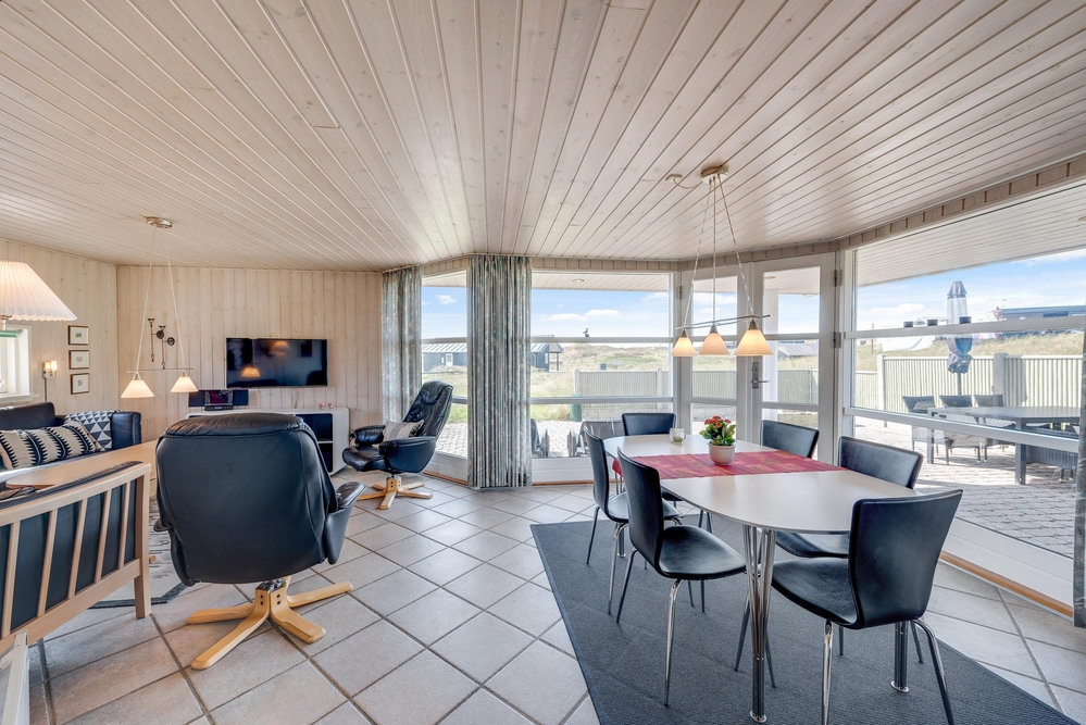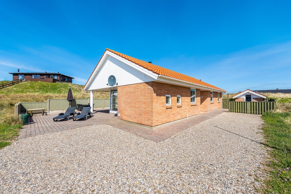 Dieses strandnahe und gepflegte Ferienhaus liegt auf einem Naturgrundstück in Søndervig, nur 150 Meter von der tosenden Nordsee, mit einem Strand, so weit das Auge reicht, entfernt. Das Ferienhaus bietet Platz für 8 Personen auf 110 gut ausgestatteten Quadratmetern. Ihr könnt auch eure vierbeinigen Familienmitglieder mitbringen, denn es sind 2 Haustiere erlaubt. Die hauseigene Sauna und der Whirlpool sind ein weiteres Highlight des Ferienhauses.