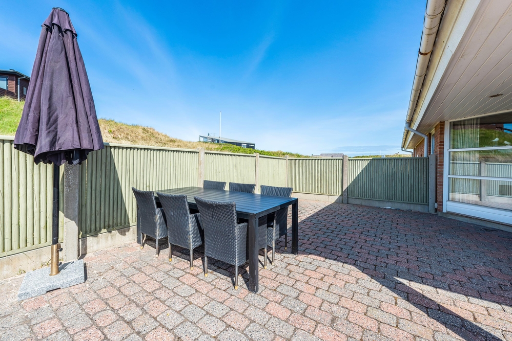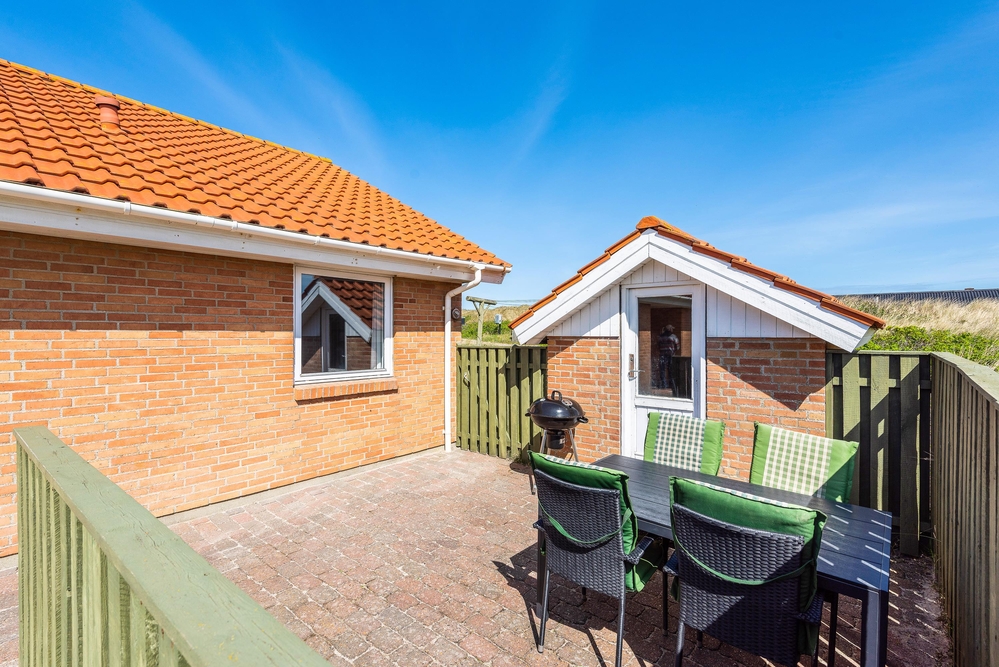 Auf der geschützten Terrasse könnt ihr die salzige Meeresluft genießen, da die Nordsee nur 150 Meter entfernt ist. Der Außenbereich lädt zum Verweilen und zum Entspannen ein. Ein Grill, Gartenmöbel und Sonnenliegen warten auf euch, um die warmen Sommerabende unter dem Sternenhimmel zu verbringen. Die Kinder werden sich über den Sandkasten freuen.