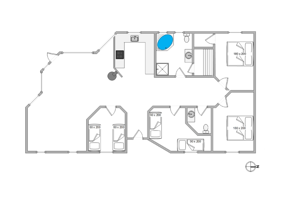 Das gemütlich eingerichtete Ferienhaus ist hell und gut ausgestattet. Die Aufteilung des Hauses ist sowohl für Familien als auch für Gruppen von Freunden ideal. An kühlen Abenden sorgt ein Kamin im Wohnbereich für eine gemütliche Atmosphäre. Es gibt auch eine Fußbodenheizung, die für warme Füße sorgt, wenn ihr den Kamin mal nicht anheizen solltet. Außerdem gibt es eine exklusive Sauna und einen Whirlpool, in denen man sich nach einem langen Tag voller Abenteuer entspannen kann. In den 4 Schlafzimmern, die mit 2 Doppelbetten und 4 Einzelbetten ausgestattet sind, lässt es sich gut schlafen und vom nächsten, spannenden Urlaubstag träumen. In dem großen Badezimmer befindet sich neben der Dusche auch der Whirlpool und der Zugang zur Sauna. Außerdem gibt es eine Gästetoilette.