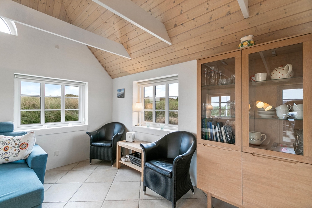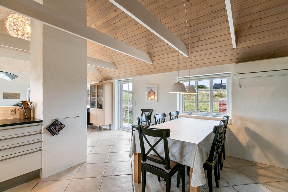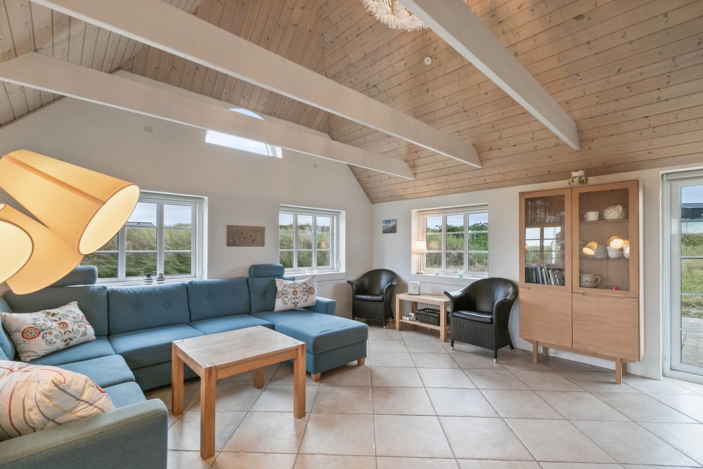 Im Holdvej 85 befindet sich ein schönes und klassisches Ferienhaus mit Reetdach und Kamin. Die Ausstattung ist modern und komfortabel aber gleichzeitig gemütlich. Hier ist für jeden etwas dabei, ein kleiner Wellnessbereich mit Whirlpool und Sauna, ein Außenbereich mit Sandkasten und Schaukel, einer energiesparenden Wärmepumpe und für die Extraportion Hygge ein Kamin. Bis zu 8 Personen können in diesem Ferienhaus auf 112m2 Urlaub machen. Ein besonderes Highlight ist die Lage des Ferienhauses. Es liegt in der Nähe eines Naturschutzgebietes, auf einem Dünengrundstück, von dem aus es nur 200 Meter bis zum Strand sind.