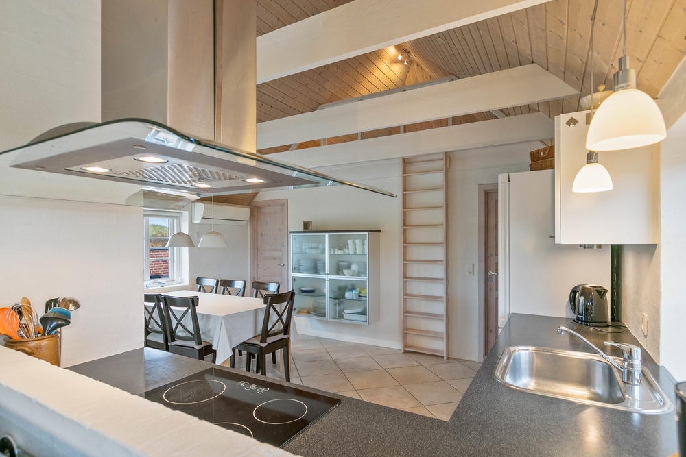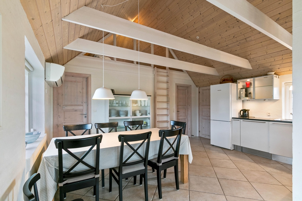Das Ferienhaus ist hell und freundlich eingerichtet und offen gestaltet mit viel Platz für gemeinsame Abende mit Familie und Freunden. Im Wohnzimmer könnt ihr es euch auf der Couch bequem machen. Es gibt 3 deutsche Fernsehprogramme und einen Chromecast, mit dem ihr eure Lieblingsserien auch im Urlaub, dank schneller Glasfaserverbindung, streamen könnt. Im angrenzenden Essbereich lädt der große Esstisch zu gemeinsamen Essen und Spieleabenden ein. Wenn ihr an kühleren Tagen, ein Feuer im Kamin anzündet und sich eine angenehme Wärme im Ferienhaus verbreitet, wird es besonders hyggelig.