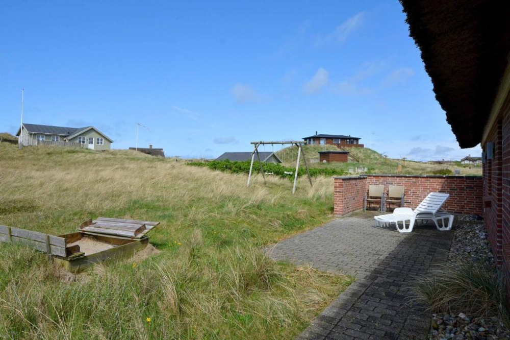 Das Ferienhaus liegt auf einem gepflegten Dünengrundstück nur 800 Meter vom Zentrum des schönen Badeortes Søndervig entfernt. Wenn ihr den Tag auf der Terrasse verbringen möchtet, könnt ihr ein Sonnenbad auf den Sonnenliegen nehmen, den Grill anschmeißen und die Kinder im Sandkasten und auf der Schaukel spielen lassen.