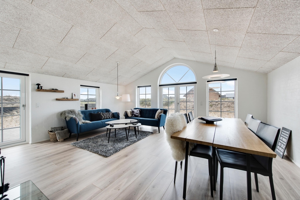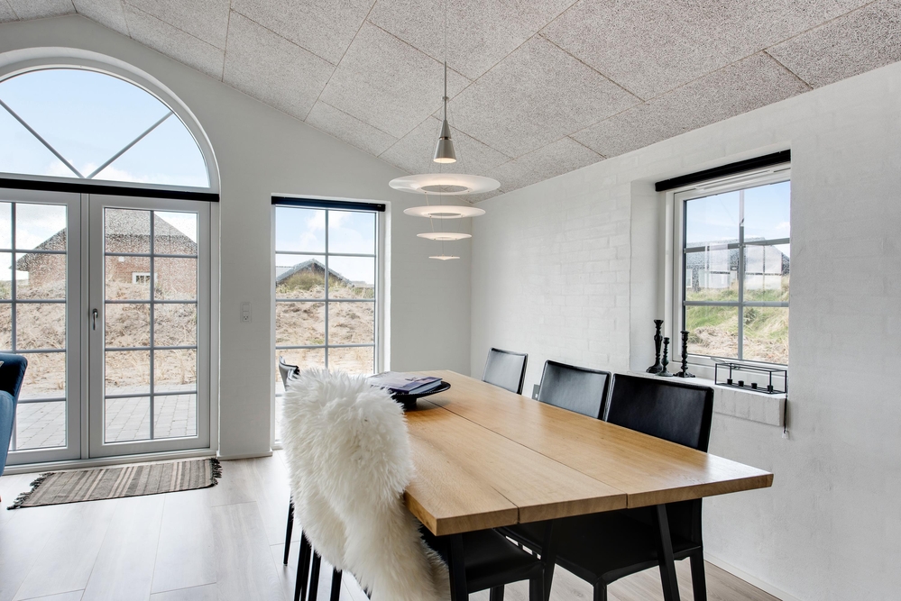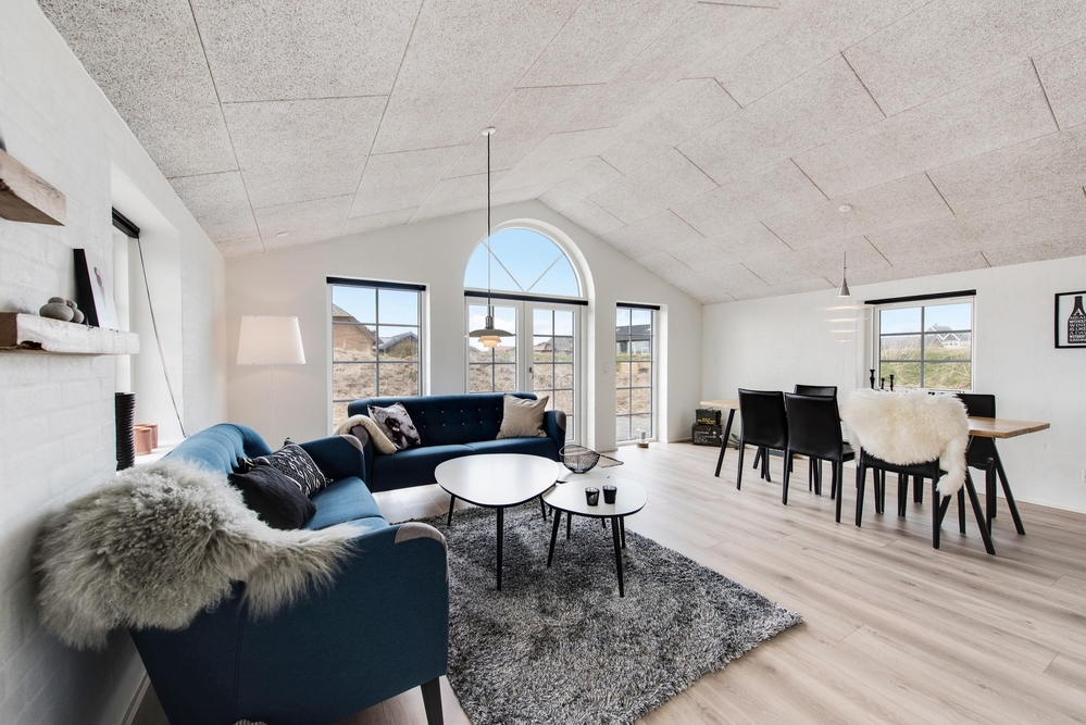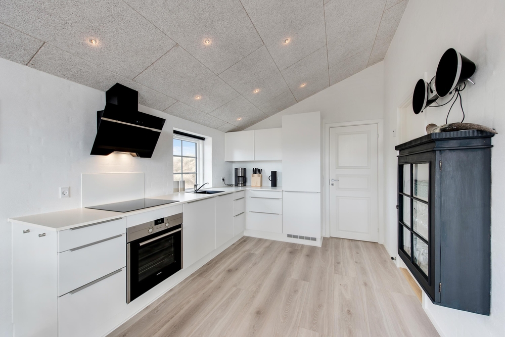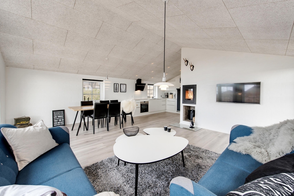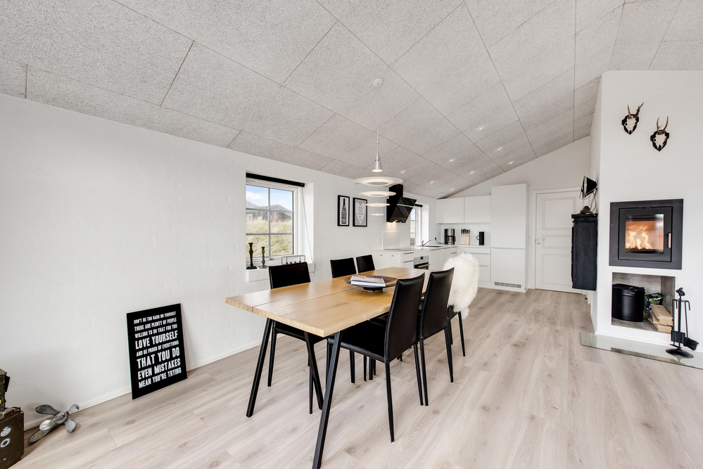 Dieses schöne Ferienhaus ist modern und hell eingerichtet. Der Wohnraum ist mit der offenen Küche verbunden, was einen schönen großen Raum bildet, wo sich die ganze Familie zum gemeinsamen Kochen versammeln kann. Danach könnt ihr der Spülmaschine den Abwasch überlassen und euch am Esstisch treffen, um Pläne für die nächsten Tage zu schmieden. Wenn ihr am Abend euch zum Kartenspielen zusammensetzt, macht den Holzofen und genießt das Prasseln des Feuers im Hintergrund.