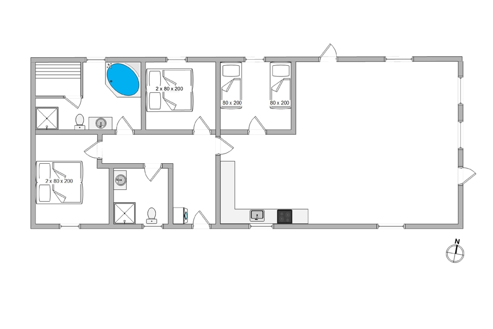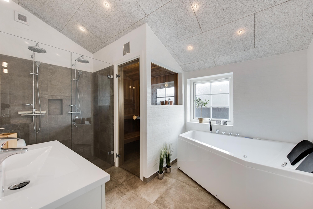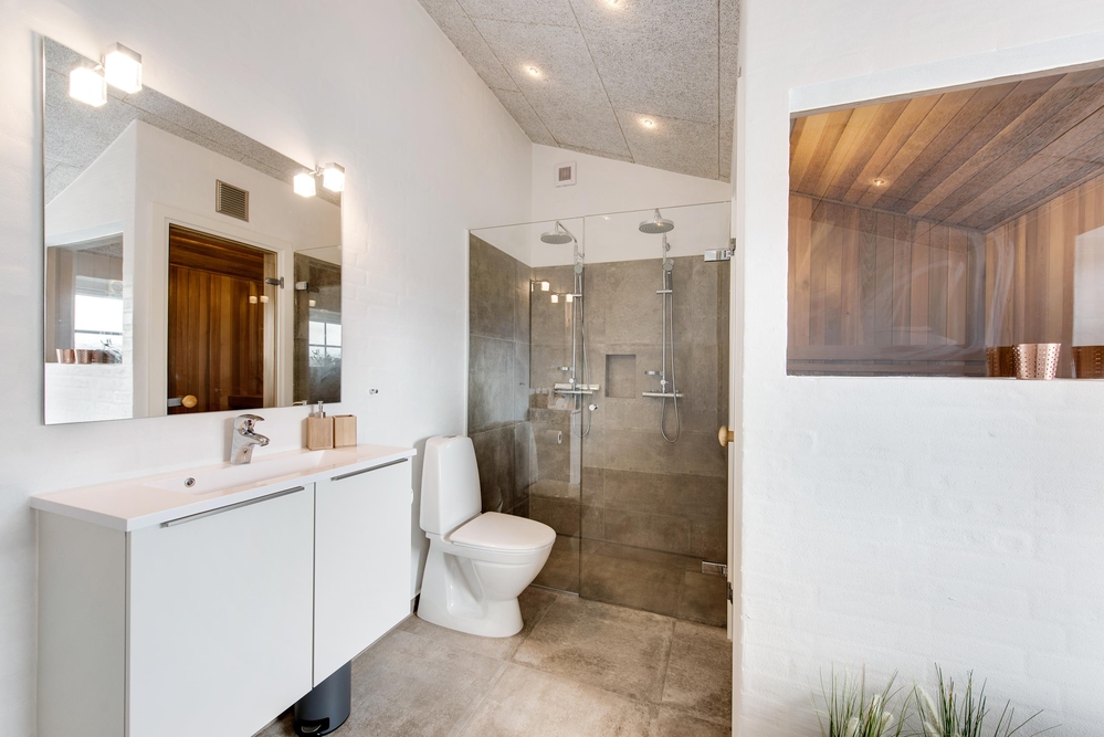 Das Ferienhaus hat 3 Schlafzimmer, wovon zwei Schlafzimmer mit je einem Doppelbett und ein Schlafzimmer mit 2 Einzelbetten ausgestattet sind. So hat jeder die Möglichkeit sich zurückzuziehen, um eine geruhsame Nachtruhe zu genießen. Zwei Badezimmer mit Fußbodenheizung ermöglichen einen angenehmen Start in den Tag und die hauseigene Sauna und der Whirlpool einen entspannten Ausklang. Die Waschmaschine und der Trockner nehmen euch die Qual der Wahl ab, was vor der Anreise einzupacken ist, hier braucht ihr nur eure Lieblingskleidung mitzunehmen.