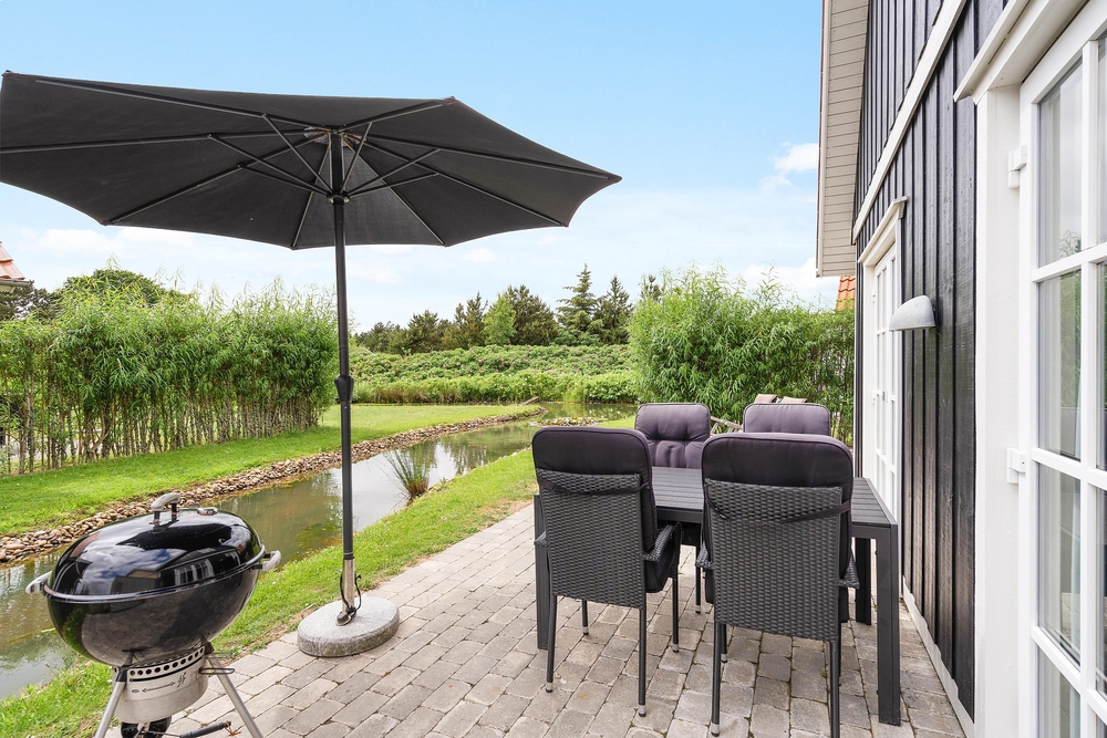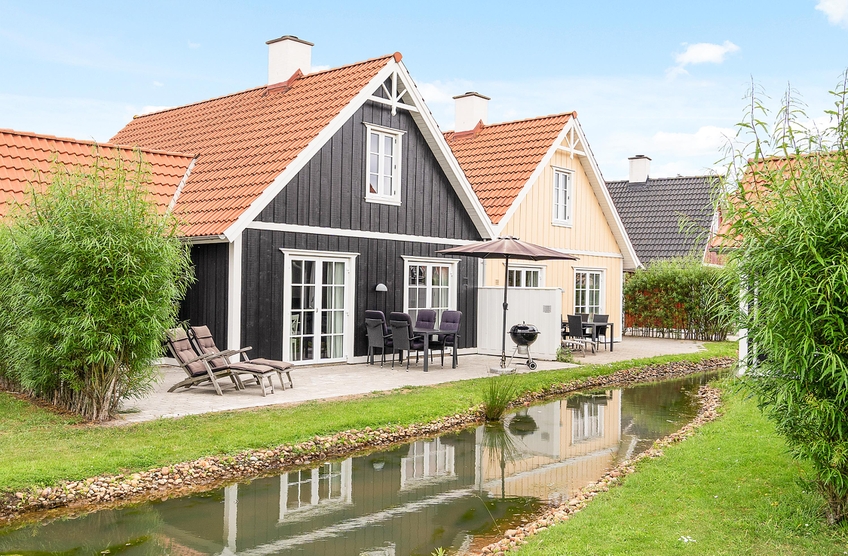 Die kleine, aber absolut gemütliche, Terrasse schliesst sich unmittelbar an das Wohnzimmer an. Von hier blickt ihr ganz idyllisch auf einen Wasserarm. Einige Wildenten haben diesen auch für sich entdeckt und ziehen genüsslich ihrer Wege ? schnatternd und im Wasser planschend.