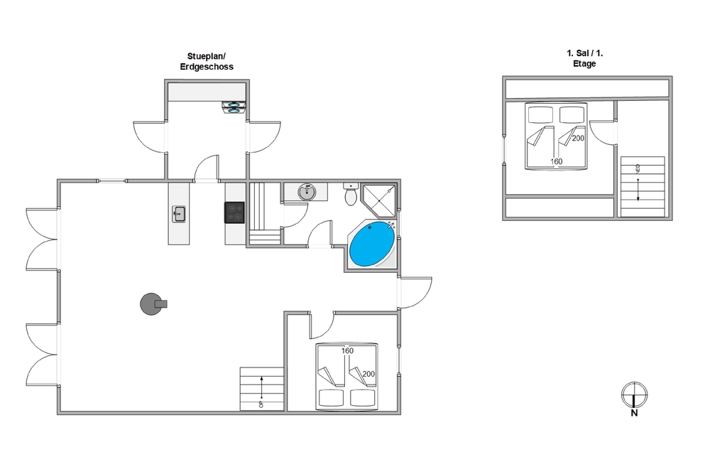 Schon beim Betreten dieses modern und zugleich schlicht eingerichteten Ferienhauses, werdet ihr euch wohlfühlen. Das in Weiss und Schwarz gehaltene Design synbolisiert Ruhe und Entspannung. Hier wurde nichts dem Zufall überlassen. Die helle und moderne Küche bietet euch Alles, um gemeinsam leckere Mahlzeiten zubereiten zu können und der Geschirrspüler übernimmt den Abwasch danach.