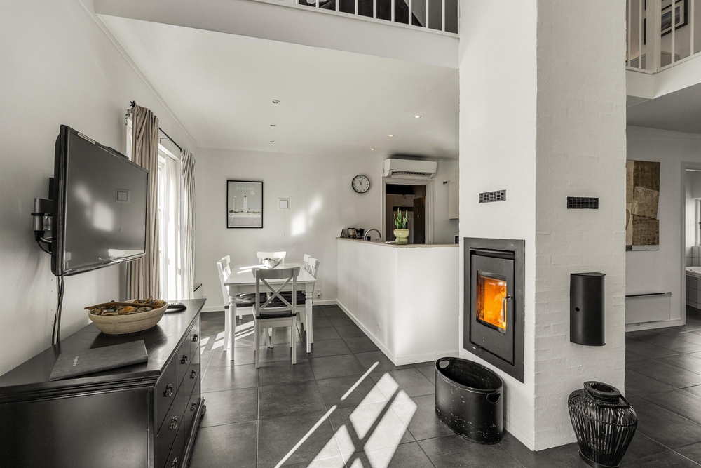 Im grossen Wohn- und Essbereich gibt es auch einen Kamin, welcher besonders an kühleren Abenden für eine wohlig warme Atmosphäre sorgt. Beim Knistern der Flammen gemütlich in ein Buch schauen oder aber endlich wieder einmal einen gemeinsamen Spieleabend verbringen ? die Umgebung ist hierfür perfekt.
