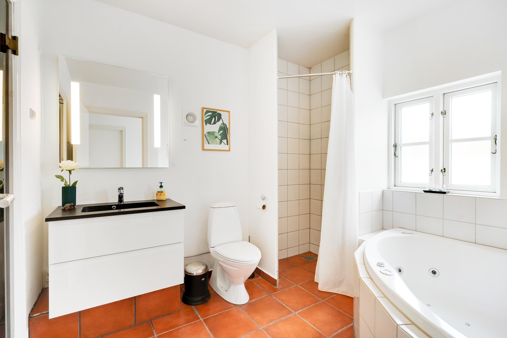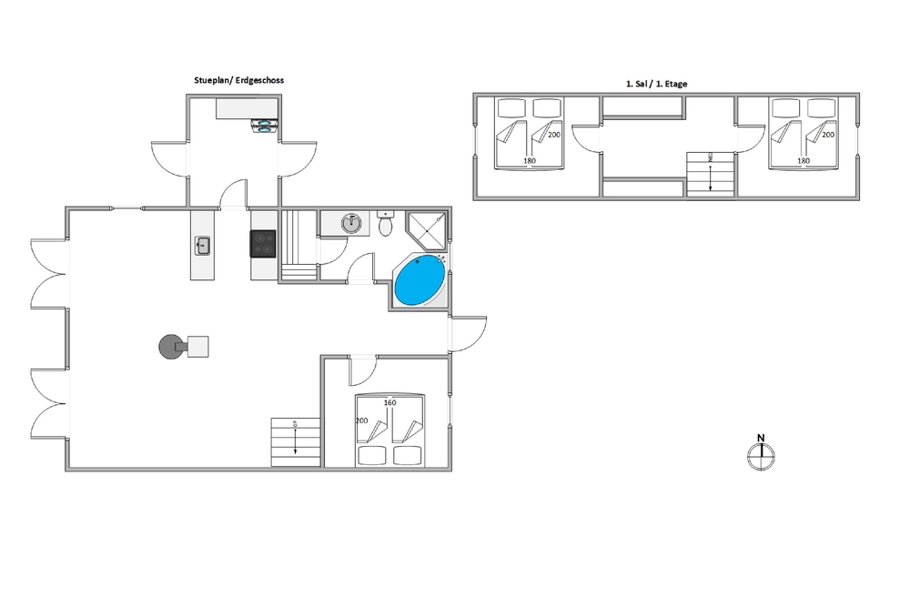 Das Erdgeschoss beherbergt zusätzlich ein gemütlich eingerichtetes Schlafzimmer sowie das geräumige Tageslichtbad mit Fußbodenheizung und Whirlpool. Lasst euch in der Sauna zwischendurch richtig durchwärmen ? anschließend schlummert ihr gewiss umso seliger in euren bequemen Doppelbetten, 2 weitere Schlafzimmer sind übrigens im Obergeschoss untergebracht.