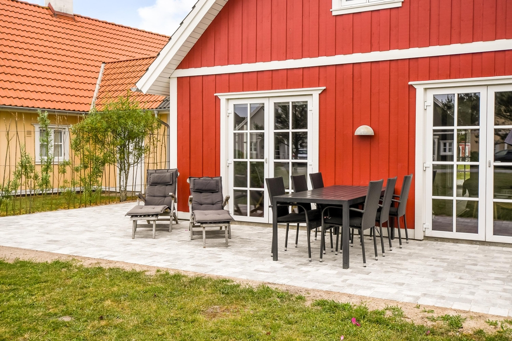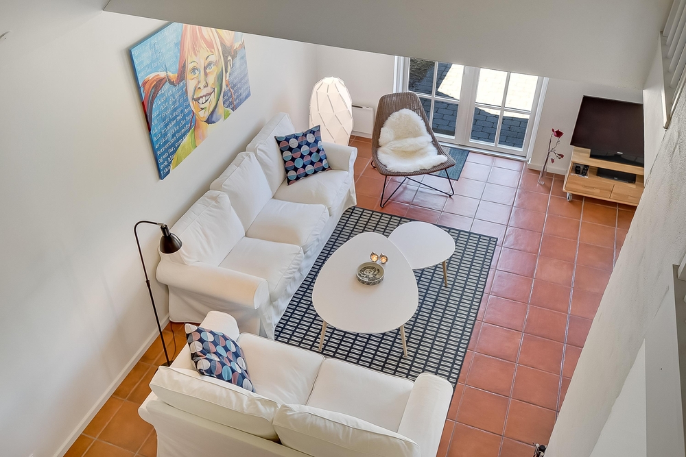 Sehr praktisch: Vom Wohnzimmer aus kommt ihr direkt auf die nach Süd-Westen ausgerichtete möblierte Terrasse, auf die ihr an warmen Tagen einfach komplett euer häusliches Urlaubsleben verlegen könnt. Bitte beachtet, dass die Gartenmöbel in den Wintermonaten entfernt sind.