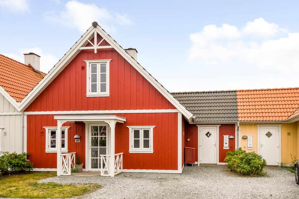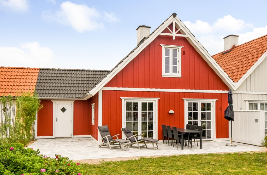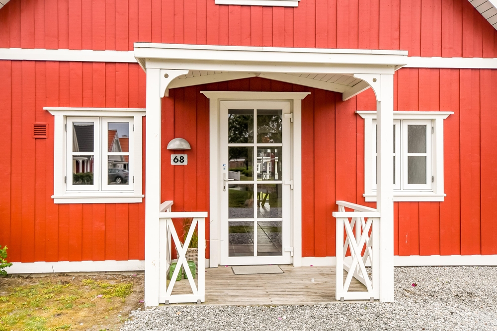 ?Vorhang auf? ? das darf man im Erdgeschoss des rot gestrichenen Holzhäuschens schon wörtlich nehmen, denn hier hält es sich nicht mit festen Trennwänden auf, wo es nicht unbedingt sein muss. Und so verbindet es Wohnen, Essen und Kochen zu einer unkomplizierten Einheit, in der gemeinschaftliches Urlaubsleben genüsslich zelebriert werden kann.