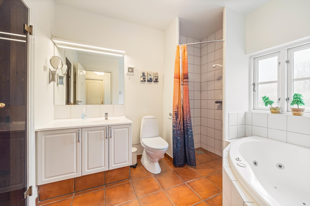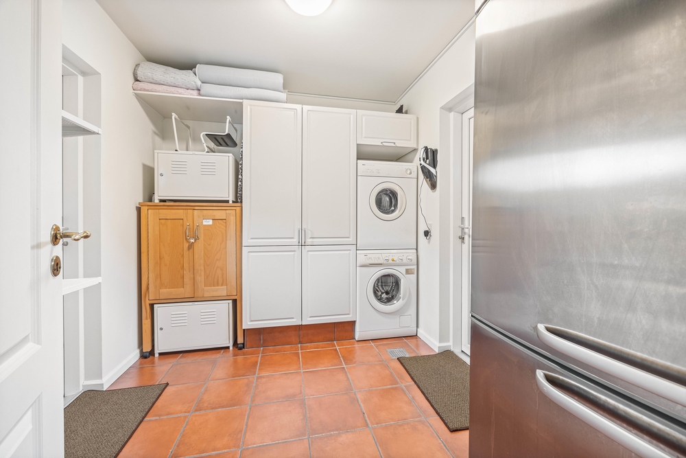 Waschmaschine, Trockner, Gefrierschrank, Geschirrspüler, und eine Fußbodenheizung im Badezimmer komplettieren das Rundum-Sorglos-Paket dieses Hauses.