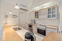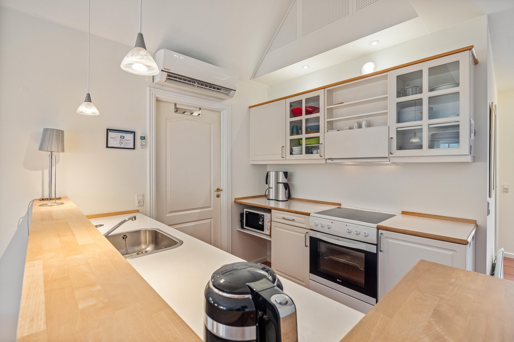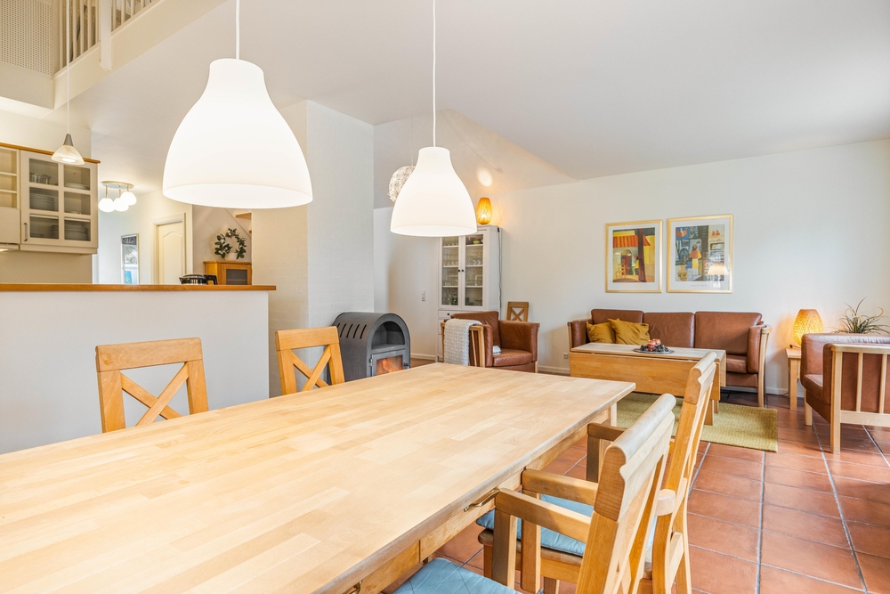 Vielleicht hat der eine oder andere auch Lust, sich in der in den Raum integrierten, voll ausgestatteten Küche auszutoben und ein paar Leckereien für die nächste Mahlzeit zu zaubern. Diese kann anschliessend gemeinsam am großen Esstisch vor dem bodentiefen Fenster eingenommen werden.