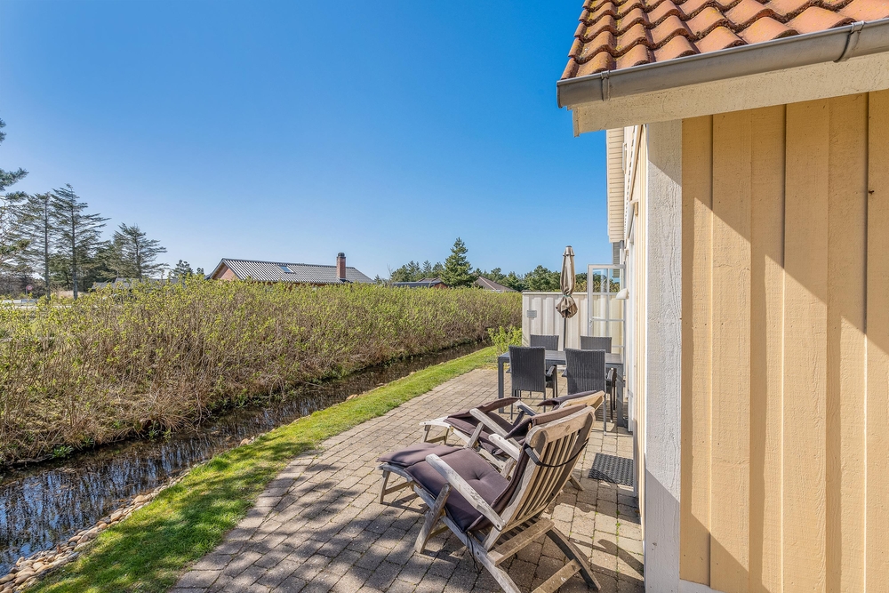 Mit der Urlaubsadresse auf Horns Bjerge 3-99 seid ihr nur 100 Meter von Blåvands Zentrum entfernt, ein lebhafter Ferienort, der mit den vielen Geschäften, den verschiedenen Restaurants und den gemütlichen Straßencafés zum Shoppen und Bummeln einlädt. Nach einem Einkaufsbummel setzt euch auf die schöne nach Süden ausgerichtete Terrasse und genießt die Wärme der Sonnenstrahlen und lauscht dem Plätschern des Baches der am Haus vorbeifließt.