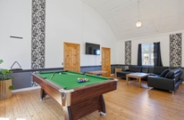 Die Highlights sind jedoch sicherlich die Badetonne im Außenbereich, mit Platz für bis zu 6 Personen, und der Whirlpool für 2 Personen im Ferienhaus. Im großen Gemeinschaftsraum ist ein Billardtisch positioniert und das offene Design des Raumes ermöglicht es euch, gleichzeitig das Geschehen am Billardtisch zu verfolgen und die Gesellschaft der anderen zu genießen.
