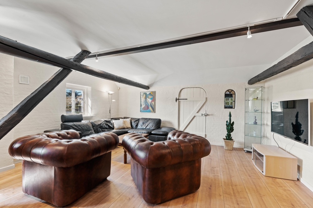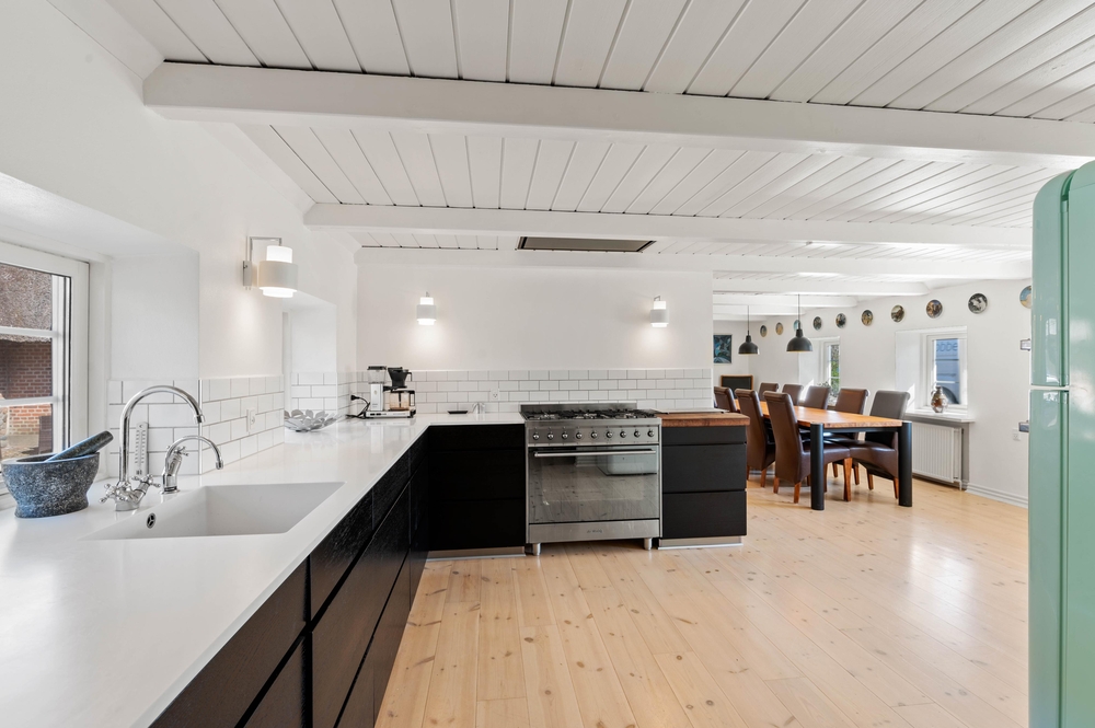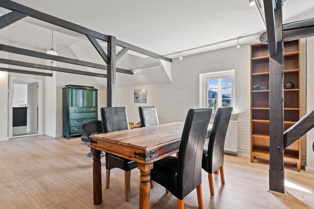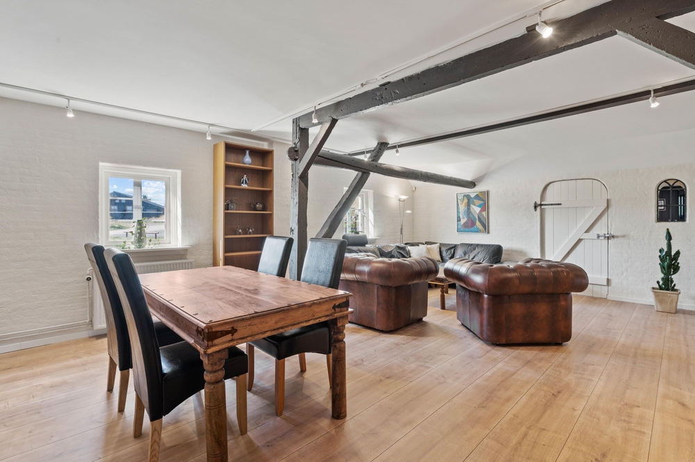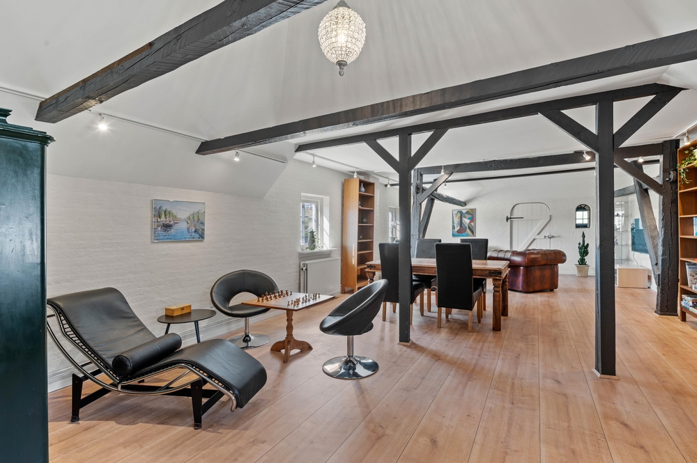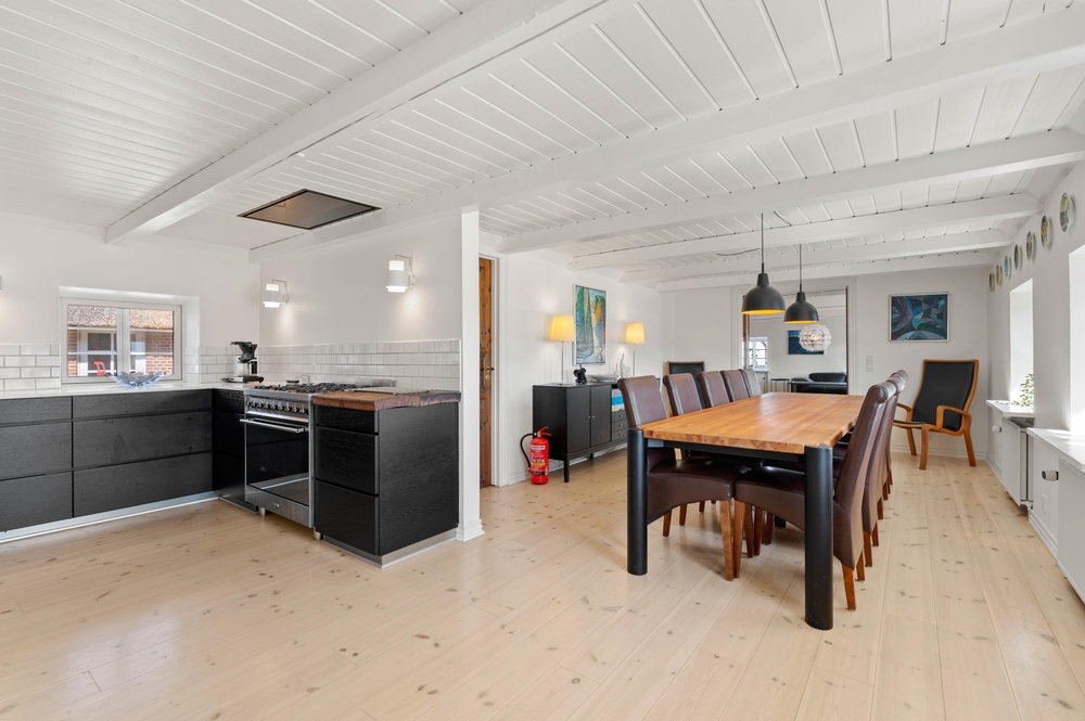 Der große Wohn- und Essbereich bildet das Zentrum des Hauses, wo ihr gemeinsam kochen und am Esstisch Spiele spielen könnt. Insgesamt gibt es 2 Wohnzimmer im Vierseitenhof, sodass einige in Ruhe ihre Lieblingsserie anschauen können, während die anderen lesen oder Karten spielen.