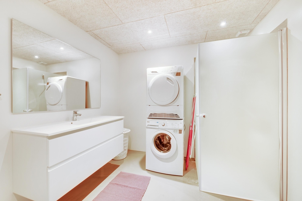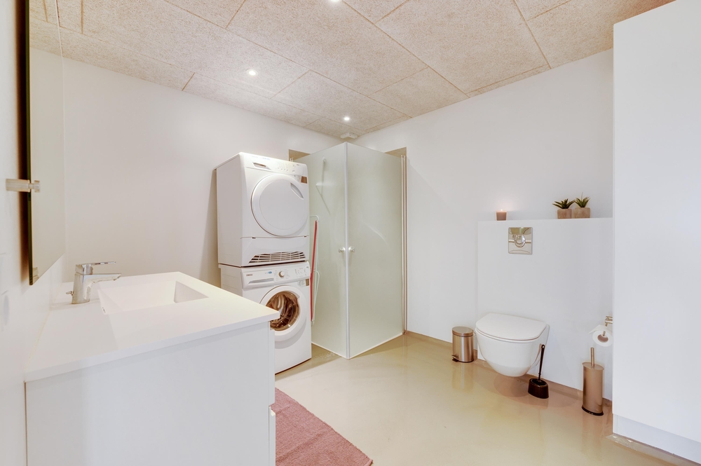 Mit Hilfe der praktischen Ausstattung in Form von Spülmaschine, Trockner und Waschmaschine sind die Klamotten schnell gewaschen und das Geschirr wieder sauber. Im Badezimmer habt ihr eine Bodenheizung und eine gute Duschkabine.