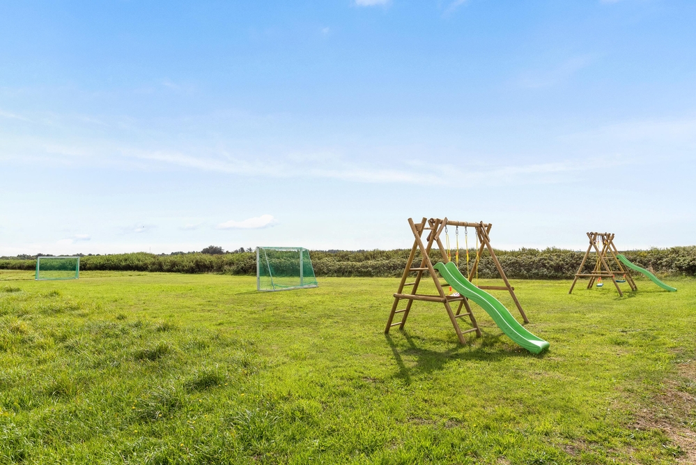Auf der Ostseite der Ferienwohnung liegt auch eine große Gemeinschaftsfläche mit Volleyballfeld, Fußballfeld und Schaukeln, die mit den zwei Nachbarwohnungen geteilt werden. Wenn die Kinder mit dem Hund spielen, könnt ihr den Grill anzünden und im gemütlichen Sommerwetter ein leckeres Grillessen zubereiten.