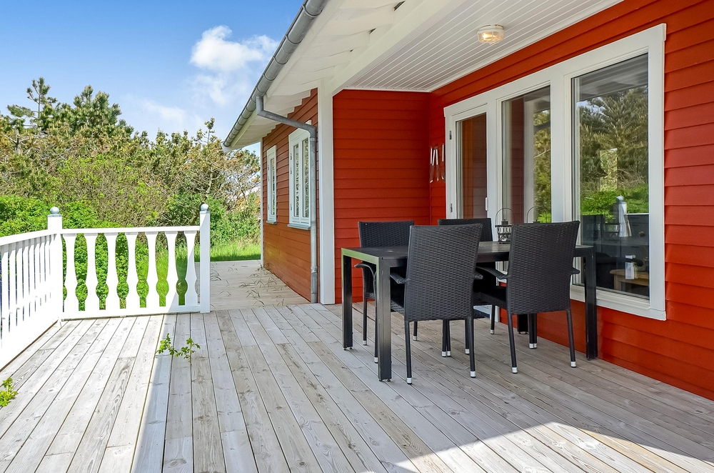 Der Außenbereich des Ferienhauses in Bjerregård ist ein tolles Highlight. Auf dem 1200 qm Naturgrundstück stehen euch ein Grill und zahlreiche Gartenmöbel wie Sonnenliegen zur Verfügung, die zu gemeinsamen Mahlzeiten und einer entspannter Zeit an der frischen Luft einladen.