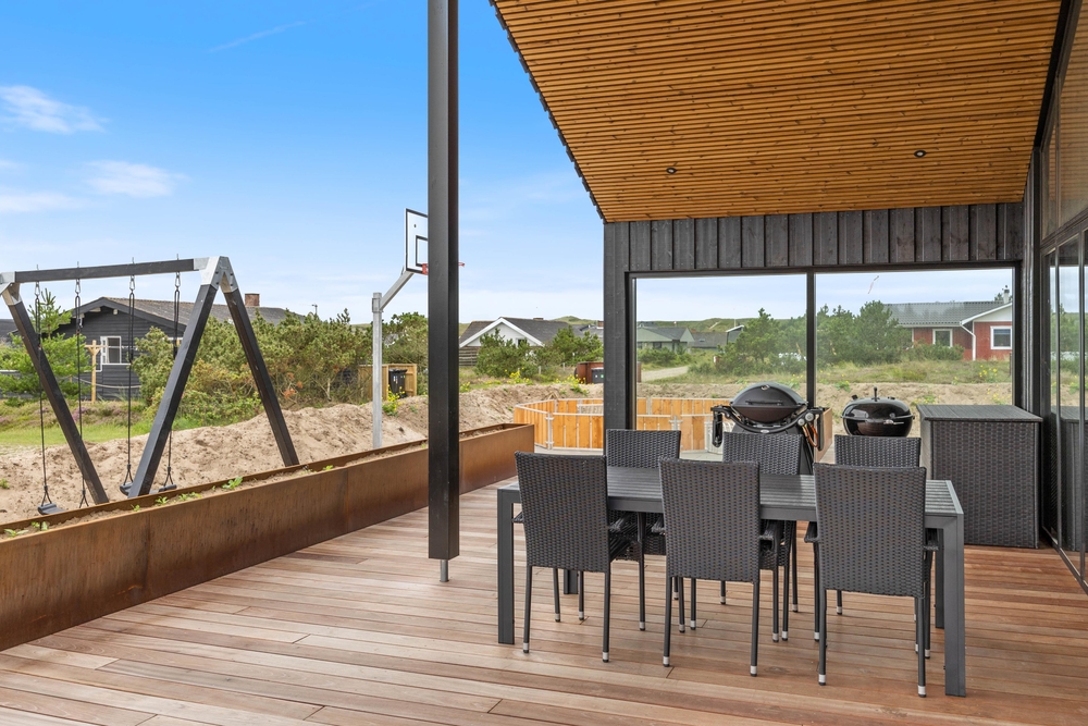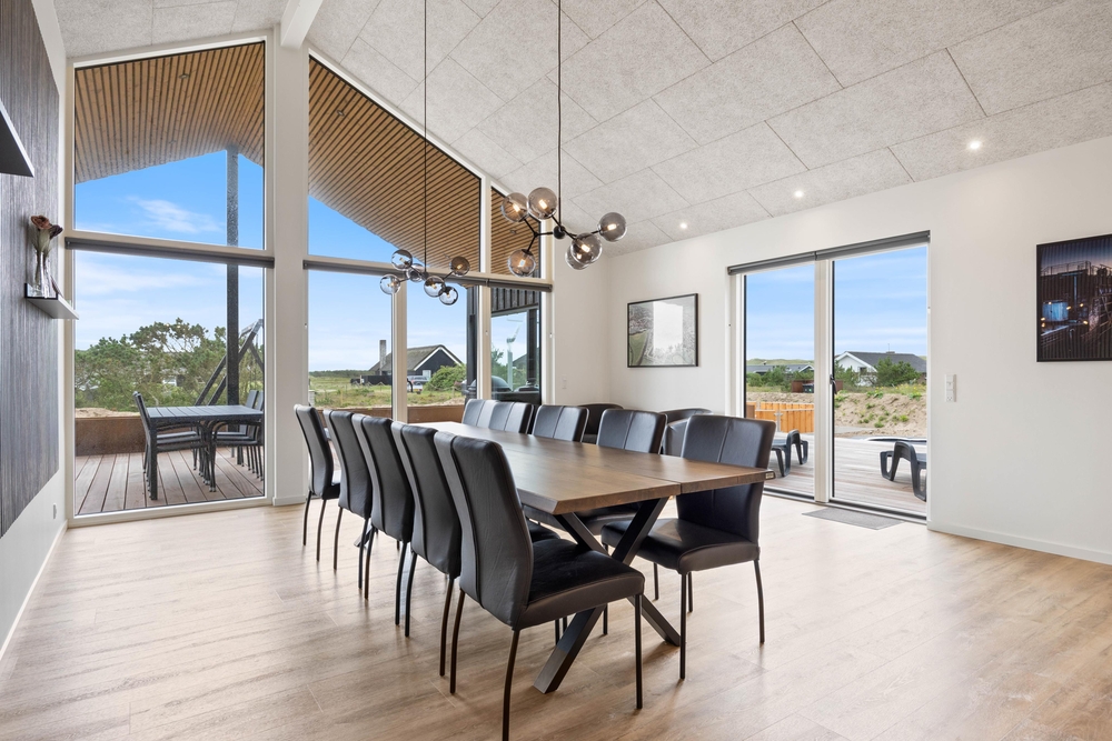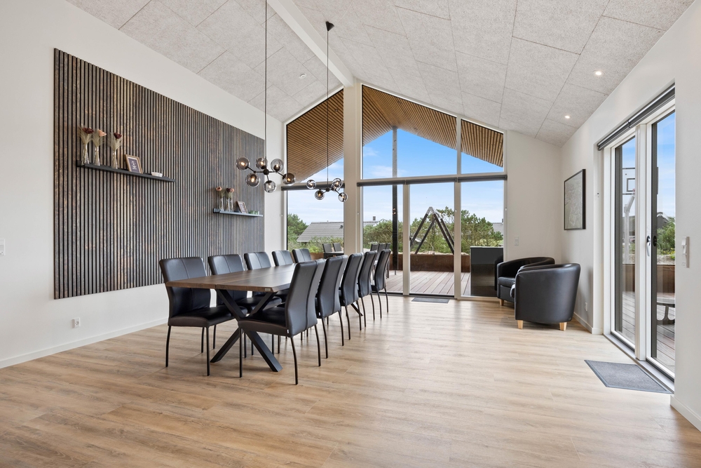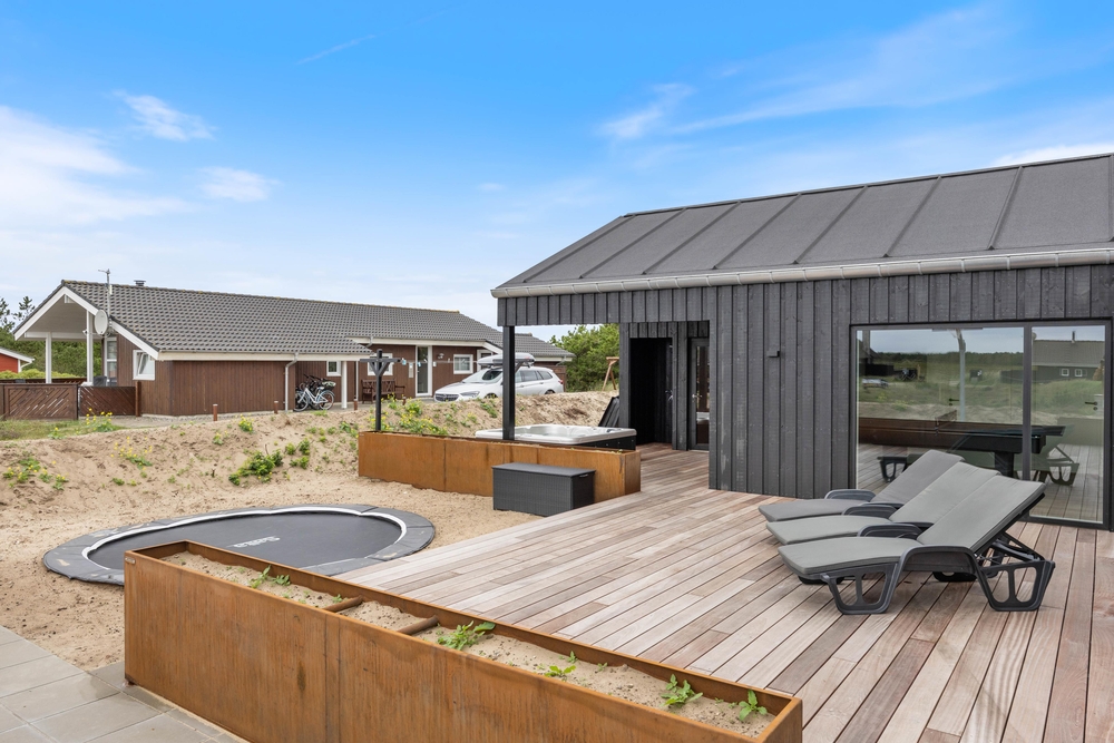 Seid ihr auf der Suche nach einem gut ausgestatteten Aktivitätshaus, welches euch sowohl Aktion als auch Entspannung bietet und wo Platz für die ganze Familie ist? Dann ist dieses moderne Ferienhaus im Humlegårdsvej 38, im beschaulichen Feriengebiet Bjerregård, eine gute Wahl. Im Jahre 2023 erbaut, bietet es eine Kombination aus Moderne und dänischer Gemütlichkeit auf 175 qm.