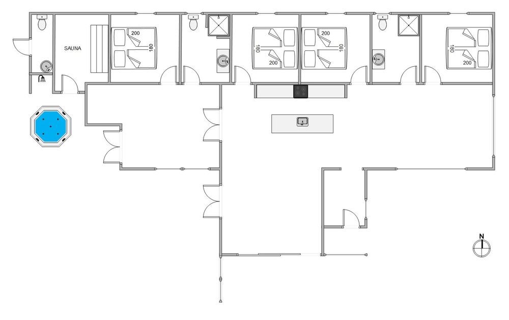 Für mehr Aktion steht euch im Aktivitätsraum euer eigener Billardtisch und eine Tischtennisplatte zur Verfügung. Im modern ausgestatteten Ferienhaus stehen zwei hochwertige Bäder mit Fußbodenheizung bereit. So könnt ihr euch gut aufteilen und Wartezeiten vermeiden. In den 4 gemütlichen Schlafzimmern stehen euch bequeme Doppelbetten für eine erholsame Nachtruhe zur Verfügung.
