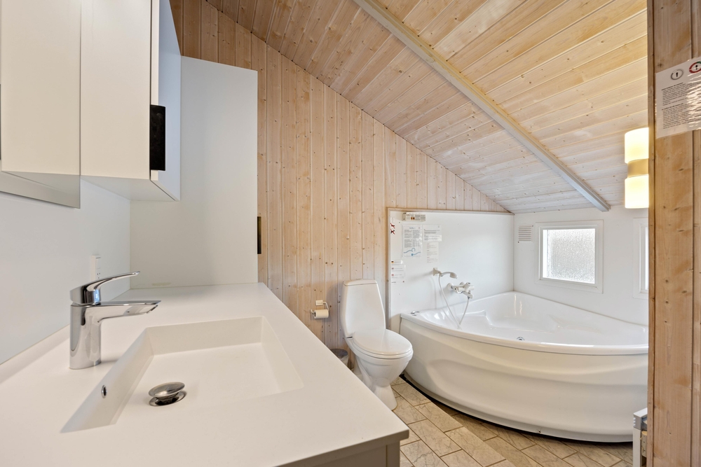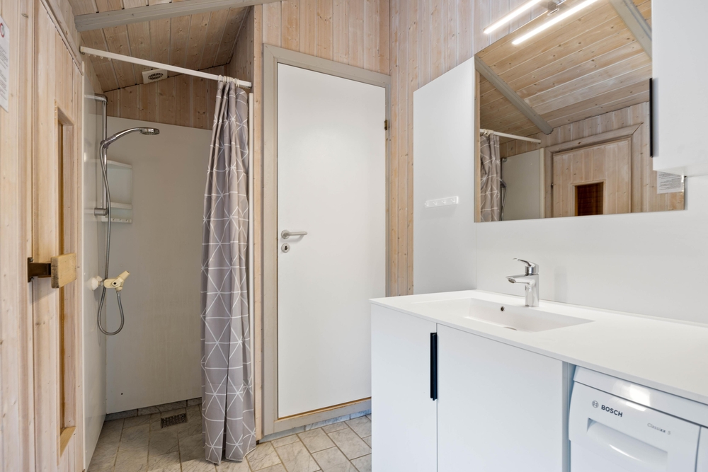 Auch ein gemeinsamer Spiele- oder Fernsehabend bietet sich an. Der Esstisch bietet Platz für gesellige Stunden beim Spielen oder Essen. Dank des Geschirrspülers habt ihr nach dem Essen mehr Zeit für Entspannung. Z. B. in eurer hauseigenen Sauna oder bei einem Bad im warmen Wasser des Whirlpools. Im großen Badezimmer wurde zudem eine Fußbodenheizung verbaut, damit ihr auch nach dem Duschen noch warme Füße habt. Achte bitte darauf, dass es eine Stufe hinunter zum Badezimmer und zum Gäste-WC gibt.