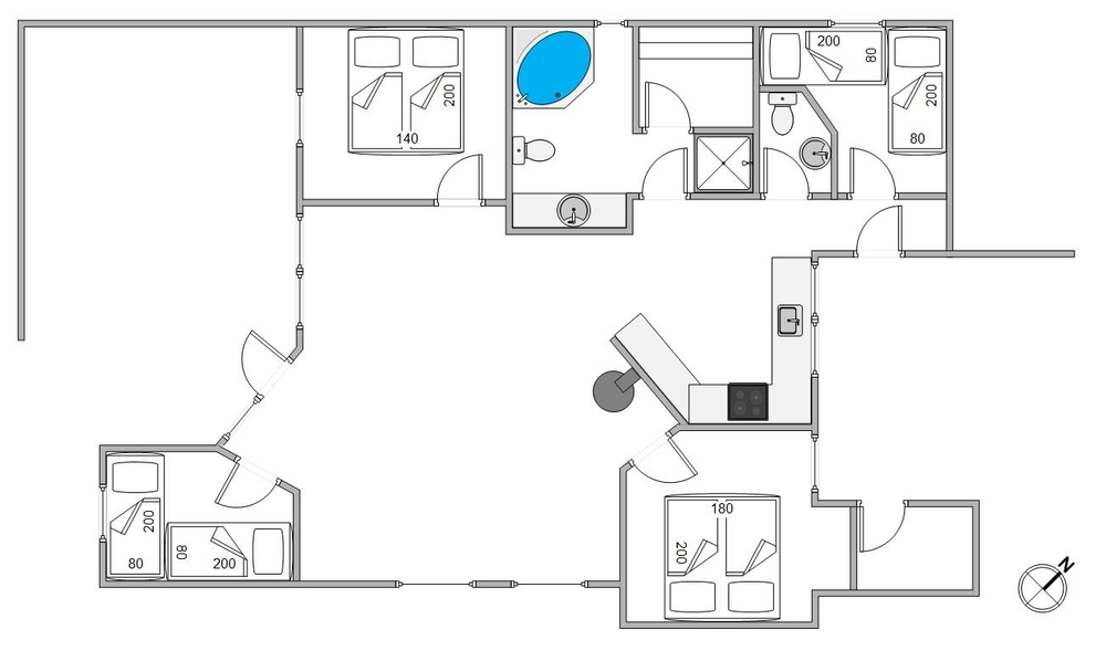 Für eine bessere Aufteilung am Morgen, steht euch zudem ein Gäste-WC zur Verfügung. Dank der vier gemütlichen Schlafzimmer findet jeder einen Platz, um sich zurückzuziehen. Es stehen euch insgesamt zwei bequeme Doppelbetten und vier Einzelbetten zur Verfügung.
