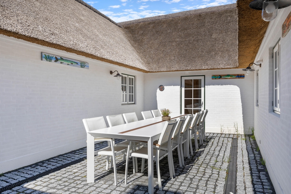 Das Ferienhaus verfügt über einen schönen Atriumhof, wo ihr euch zu einem gemütlichen Grillabend mit leckerem Essen vom hauseigenen Grill treffen können. Hier könnt ihr eure Hunde freilaufen lassen, ohne euch Sorgen zu machen, dass sie weglaufen könnten.