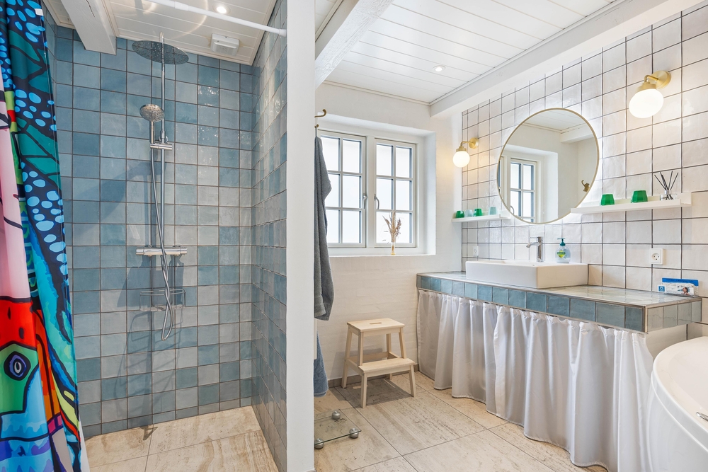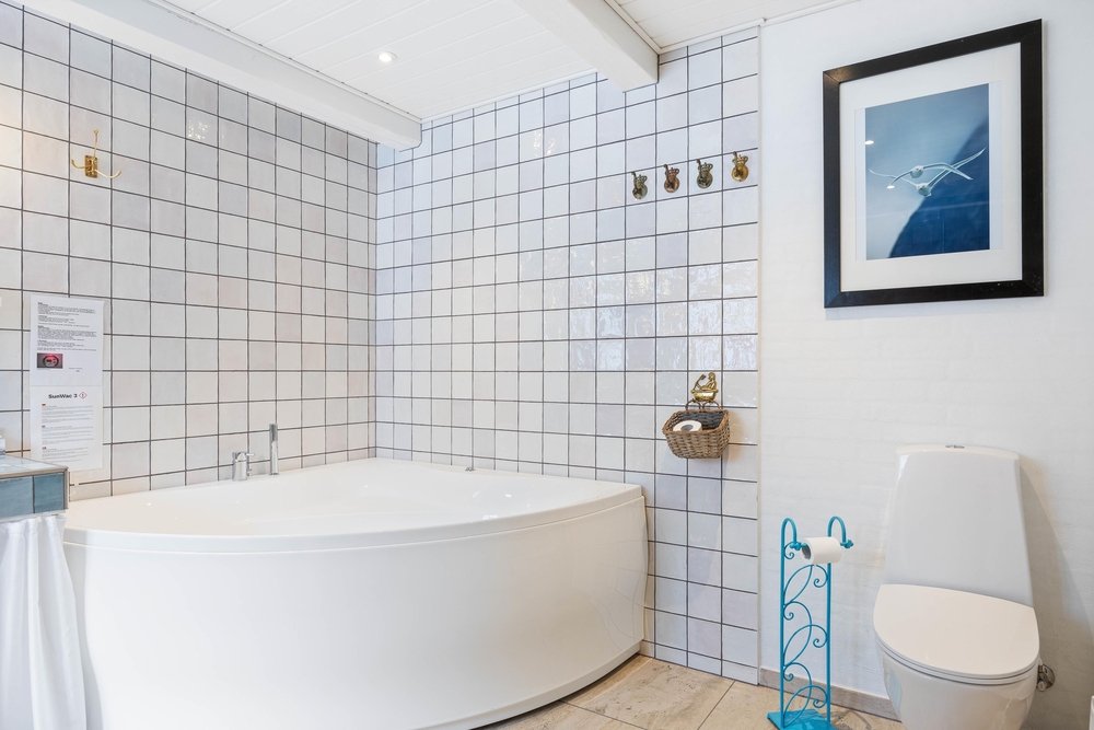 Das Ferienhaus verfügt über 2 Bäder. Alle beide sind mit Fußbodenheizung und Dusche ausgestattet. Im großen Badezimmer findet ihr außerdem einen Whirlpool zum Entspannen und Wohlfühlen. Für die frische Wäsche zwischendurch stehen euch Waschmaschine und Wäschetrockner zur Verfügung.