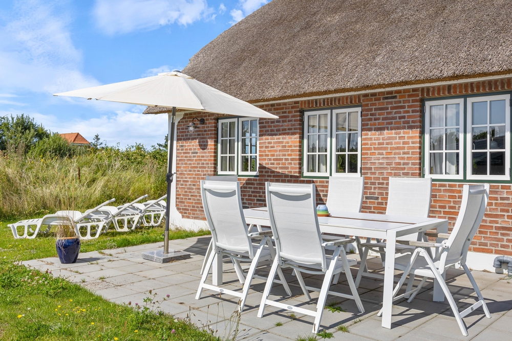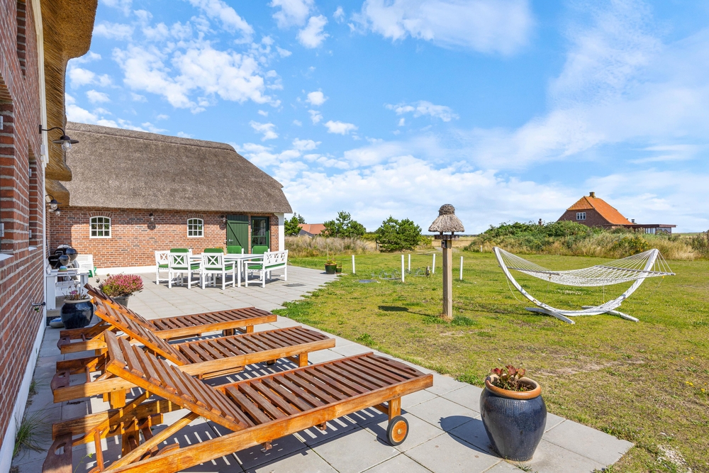 Das Ferienhaus wurde 2023 als ursprünglicher Dünenhof aus dem Jahr 1870 wiederaufgebaut. Der vierseiten Dünenbauernhof ist aus Backstein mit einem Reetdach gebaut und überzeugt im Inneren mit hohen Decken. Die freiliegenden Deckenbalken, die kleinen Sprossenfenster und die schöne Küche im Landhausstil schaffen eine schöne und einladende Atmosphäre im Ferienhaus.