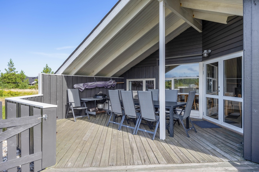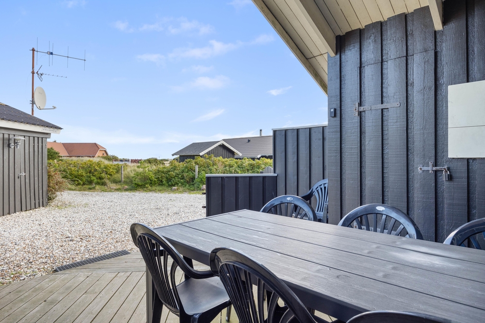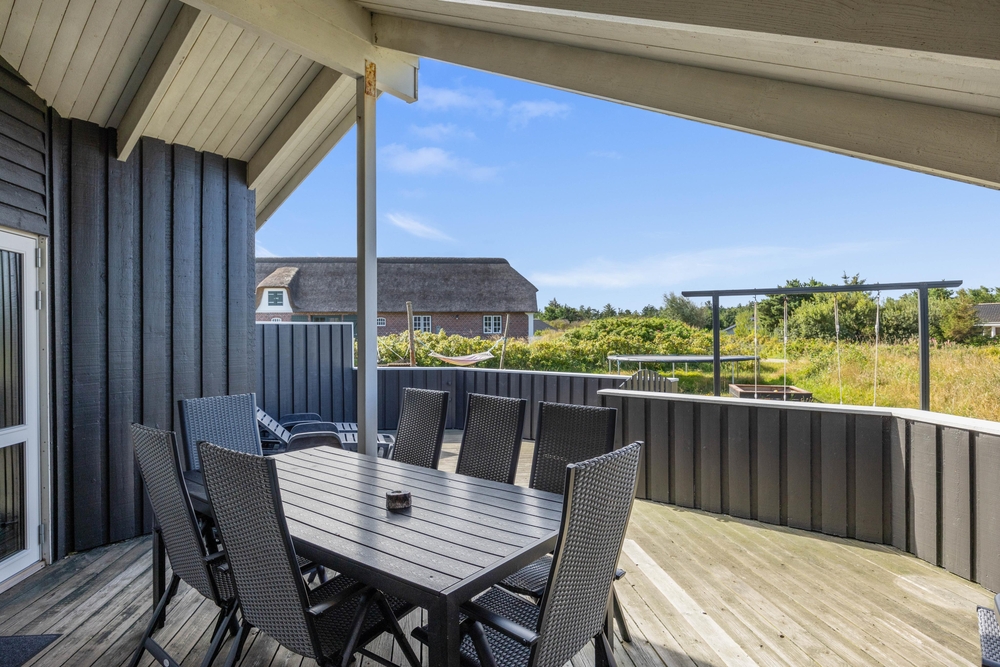 Das Ferienhaus hat eine schöne abgeschirmte Terrasse, die teilweise überdacht ist. Hier könnt ihr den ganzen Tag verbringen, auch wenn das Wetter einmal nicht mitspielt.