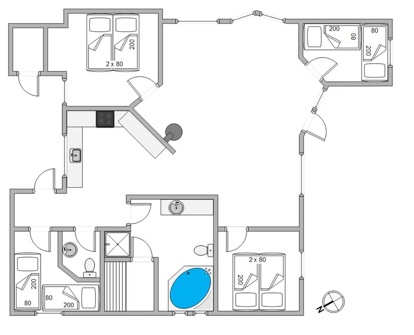 Für die Schlummerstunden in der Nacht bietet das Ferienhaus zudem 8 Schlafplätze, die sich auf 4 Schlafzimmer verteilen. 2 Schlafzimmer sind mit Doppelbetten eingerichtet, wobei die anderen 2 Zimmer mit je 2 Einzelbetten ausgestattet sind.