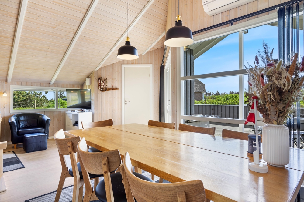 Das Ferienhaus ist mit Geschirrspüler, Mikrowelle, Kühlschrank mit Gefrierfach ausgestattet, so dass der Koch des Hauses Mahlzeiten für die ganze Familie zubereiten kann und im schönen Wohnzimmer mit hohen Decken und großen Fenstern mit tollem Licheinfall, komfortablen Möbeln, Holzboden, Flachbildschirm-TV mit Appel TV, Blutoothlautsprecher und Holzofen könnt ihr gemeinsamt viele gemütlich Stunden verbringen.