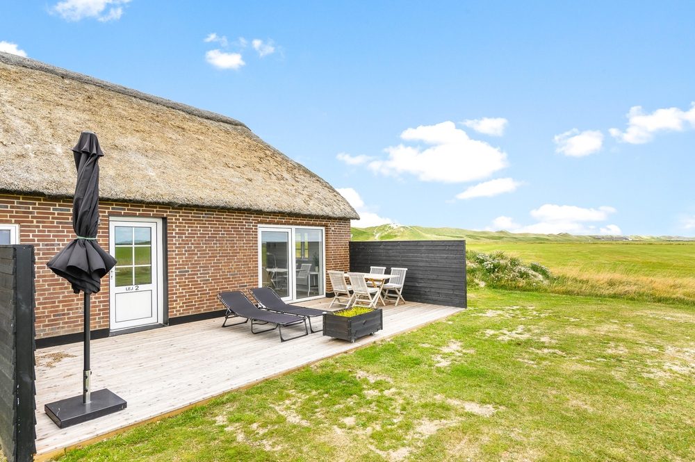 Die kleine reetgedeckte Ferienwohnung gegenüber der wunderschönen Dünenlandschaft in Vester Husby ist besonders gut für kleine Familien mit bis zu 4 Personen oder Paare, die eine gemütliche Auszeit zu zweit brauchen, geeignet. Euer Haustier ist hier ebenfalls herzlich willkommen. Die Gegend von Houvig bis Husby ist bekannt und beliebt für ihren breiten Sandstrand und ideal für lange Strandspaziergänge entlang der tosenden Nordsee. Hier könnt ihr eure Tage in der wunderschönen Dünenlandschaft mit atemberaubender Aussicht und nur knappe 200 Meter vom Meer entfernt genießen. Es kann vorkommen, das die Eigentümer zeitgleich in ihrem privaten Teil des Hauses Urlaub machen. Dies hat aber keine Einschränkungen für euch zur Folge.