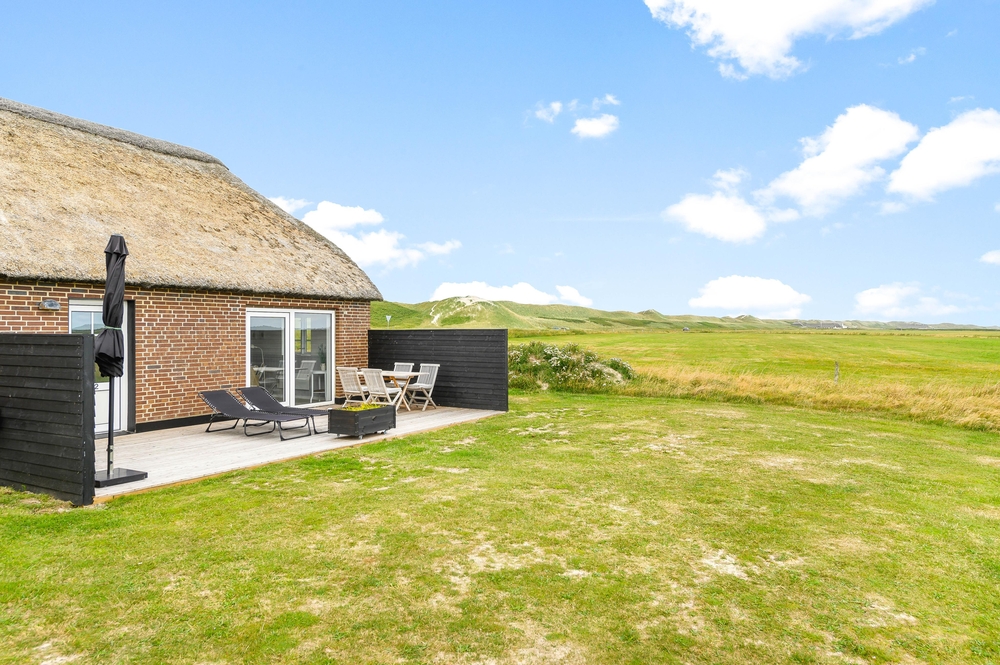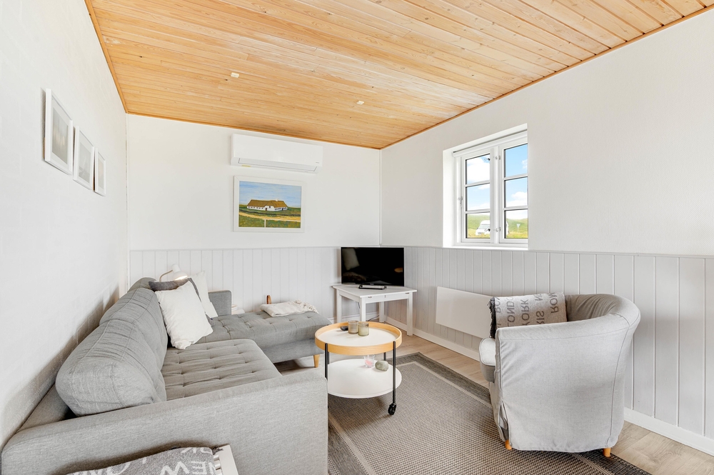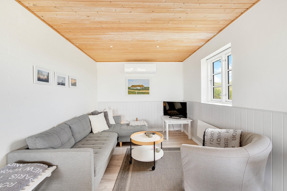 Die Ferienwohnung ist hell und gemütlich eingerichtet und der vorhandene Platz wird bestens genutzt. Die Möbel wurden sorgfältig ausgewählt und in harmonischen, neutralen Farben gehalten. Die großen Fenster bieten eine herrliche Aussicht in die Natur Westjütlands und die Alleinlage sorgt für Privatsphäre. Der Wohn -und Essbereich mit der intergrierten Küche ist der Mittelpunkt der Ferienwohnung und der Ort an dem die ganze Familie zusammen kommt um die kostbare Urlaubszeit gemeinsam zu verbringen. Die energiesparende Wärmepumpe sorgt das ganze Jahr über für angenehme Temperaturen.