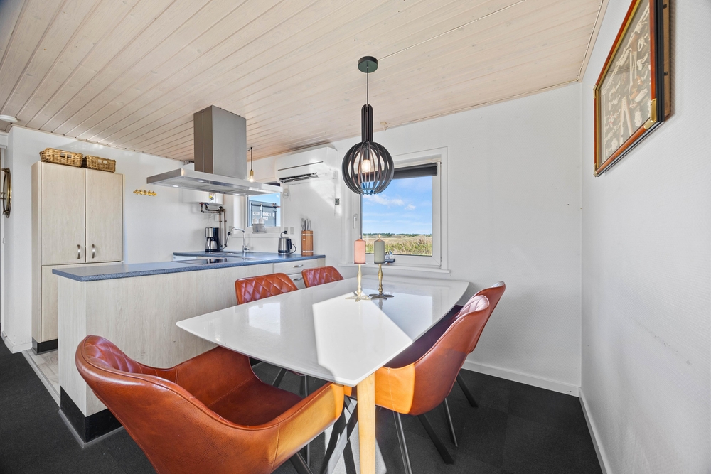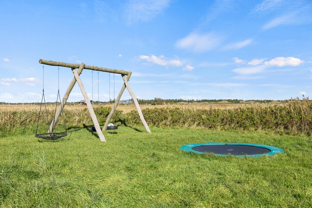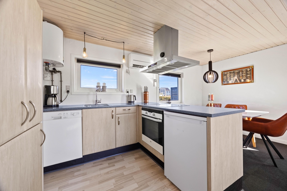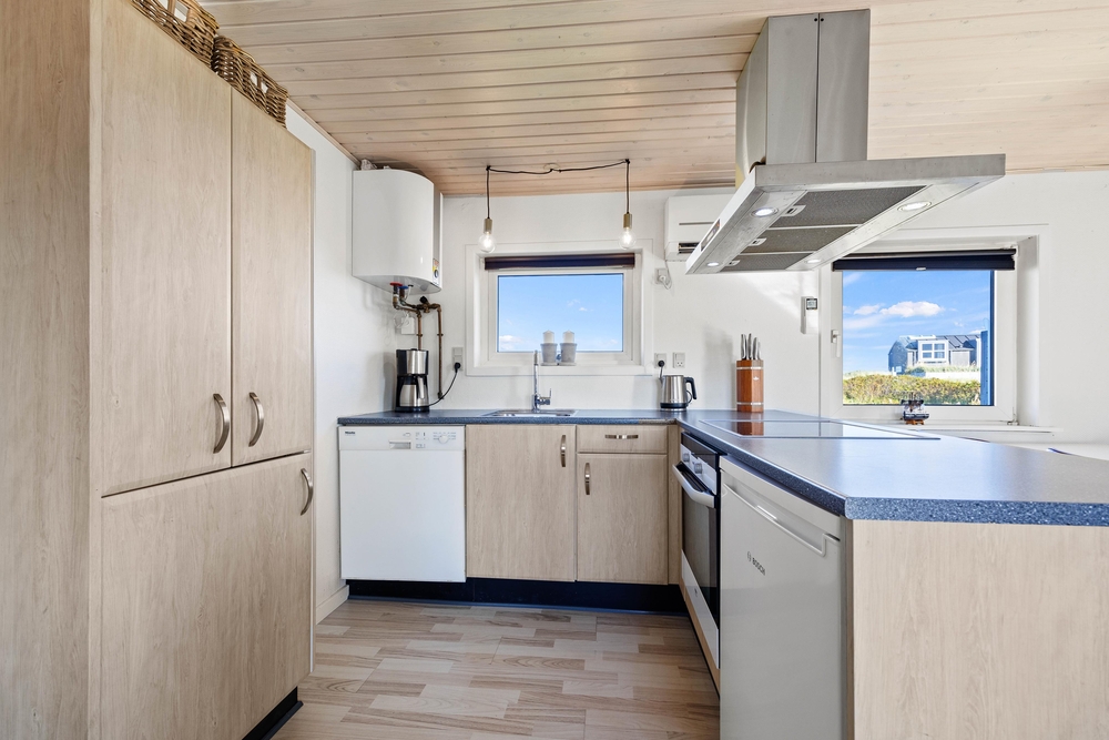 Dieses charmante, kleine Ferienhaus in Blavand befindet sich in idealer Lage nur 30 Meter vom Strand entfernt und wartet darauf, euch einen unvergesslichen Aufenthalt zu bescheren. Ihr findet das Ferienhaus am Hvidbjerg Strandvej 161, ein idyllisches Plätzchen mit nur wenigen Nachbarhäusern, das für bis zu 4 Personen und eure 2 Hunde Platz bietet. Mit einer gemütlichen Wohnfläche von 50 m² und modernen Annehmlichkeiten wie Kaminofen, Wärmepumpe und einer einladenden Ausstattung an Geräten wie Spülmaschine und Waschmaschine, verleiht es eurem Urlaub den Komfort von Zuhause. Kinderaugen werden bei der Schaukel und dem Trampolin auf dem großzügigen 2563 m² Naturgrundstück leuchten, während Erwachsene die wohlige Wärme des Kaminofens sowie das Rauschen der Wellen, welche direkt hinter dem kleinen Deich an den Strand rollen, genießen.