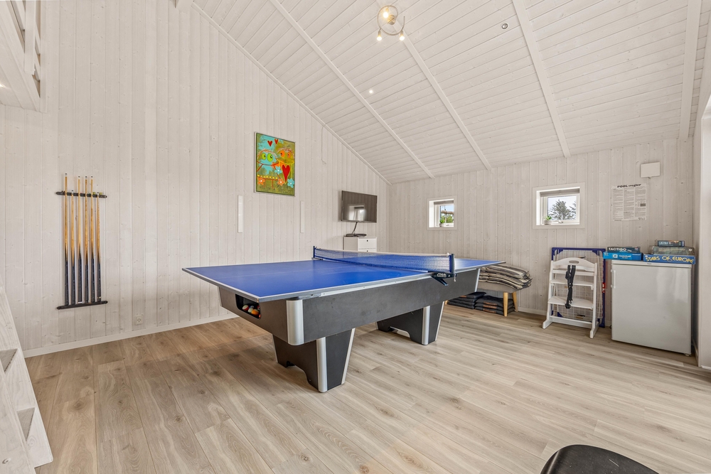 Das gemütliche Ferienhaus bietet viele Unterhaltungsmöglichkeiten für die ganze Familie. In der Sauna und im Whirlpool könnt ihr euch entspannen und die Gedanken schweifen lassen, während die Kinder im geräumigen Aktivitätsraum Billard oder Tischtennis spielen. Bei gutem Wetter könnt ihr die dänische Sommersonne auf geschlossenen Terrasse mit einem guten Buch oder einer Tasse Kaffee genießen. Ist es in der Mittagssonne zu warm, könnt ihr euch auf den überdachten Teil der Terrasse zurückziehen.