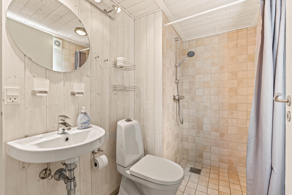 In diesem Ferienhaus auf Hvidbjerg Strandvej 7F stehen euch 3 gemütliche Schlafzimmer sowie 2 Schlafplätze auf dem Schlafboden zur Verfügung. Die 2 Badezimmer sorgen dafür, dass morgens keine langen Warteschlangen beim Zähneputzen entstehen.