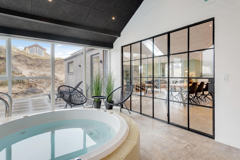 Nur ca.350 m vom herrlich, feinsandigem Sandstrand Søndervigs entfernt, liegt in einer Dünenmulde dieses schöne Poolhaus mit Sauna und Whirlpool. Hervorzuheben ist nicht nur die gute und strandnahe Lage, sondern auch die besonders familienfreundliche Ausstattung mit Dart und Tischfussball sowie, Schaukel, Sandkasten und Spielhaus für die Kleinsten. Für euer E-Auto ist eine Lademöglichkeit vorhanden, ihr müsst nur eure Ladekabel/Adapter mitbringen.