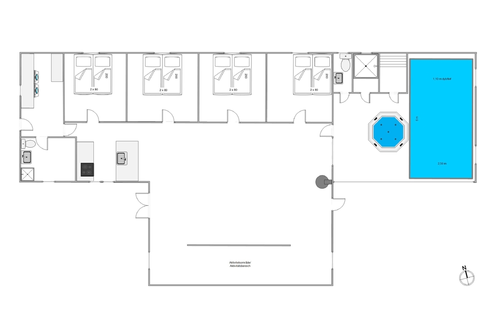 Eure Kinder haben sich bestimmt immer schon ein Haus mit Pool gewünscht ? dies geht nun in Erfüllung. Während die Kleinsten kein Ende finden, entspannt ihr euch in der Sauna oder genießt das warme Wasser des Whirlpools. Die Aktiven unter euch können schon am frühen Morgen ihr Training beginnen, da der Pool auch eine Gegenstromanlage hat. Aber auch außerhalb des Poolraumes findet noch etwas Action statt. Ein kleiner Aktivitätsbereich mit Dart und Tischfußball steht den Wettkampf begeisterten zur Verfügung, sodass Spiel und Spaß in diesem Urlaub im Vordergrund stehen.