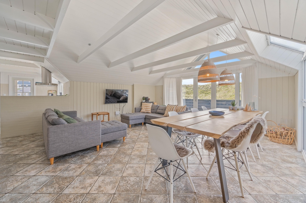 In der Küche und dem schönen Wohnbereich gibt es hohe Decken und Klinkerfliesen mit Fußbodenheizung. In der Küche ist ein 165 Liter Gefrierschrank, Mikrowelle und ein Geschirrspüler vorhanden. Der Wohnbereich ist gemütlich und geschmackvoll eingerichtet mit einem Flachbildschirm-TV, Kamin, Radio und einem kostenlosen Internetzugang.