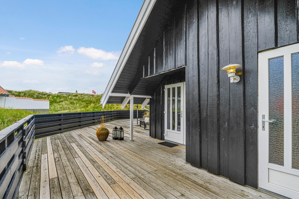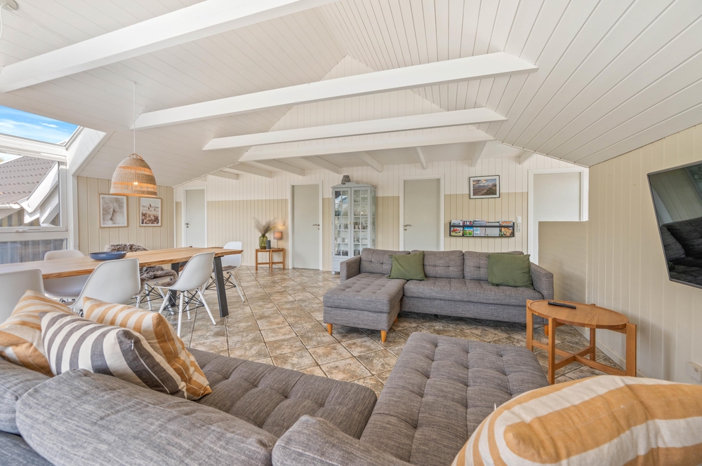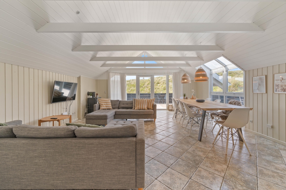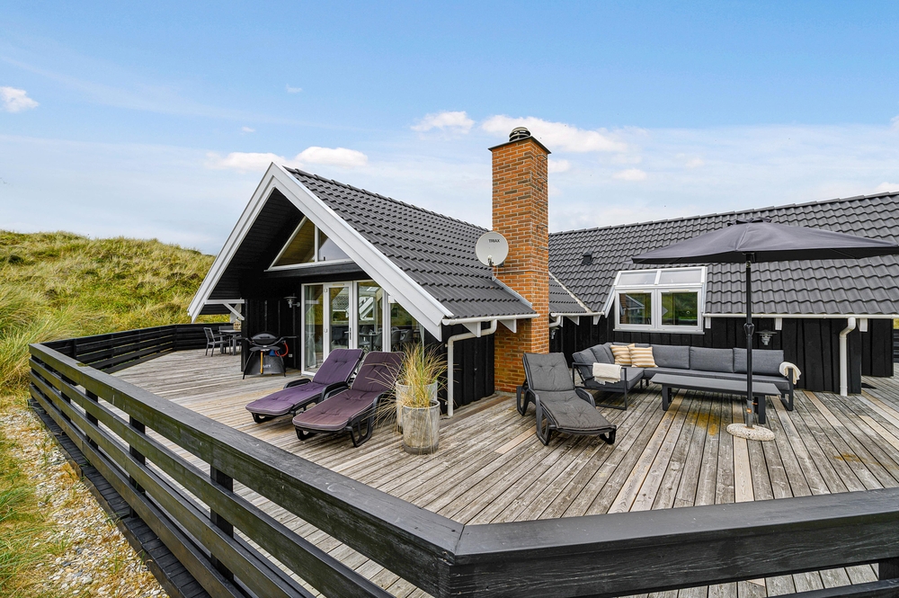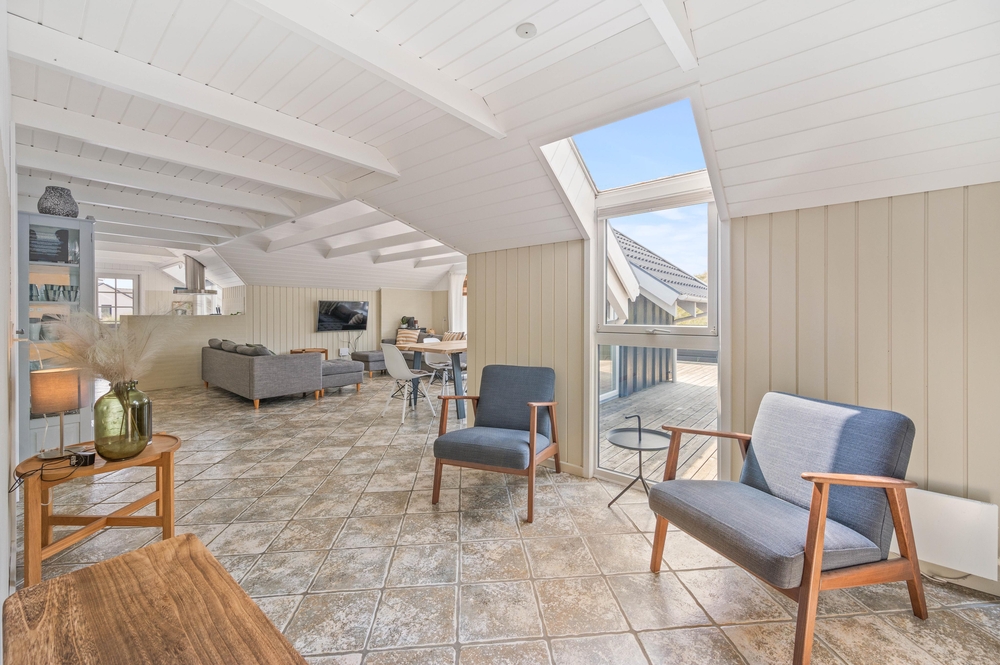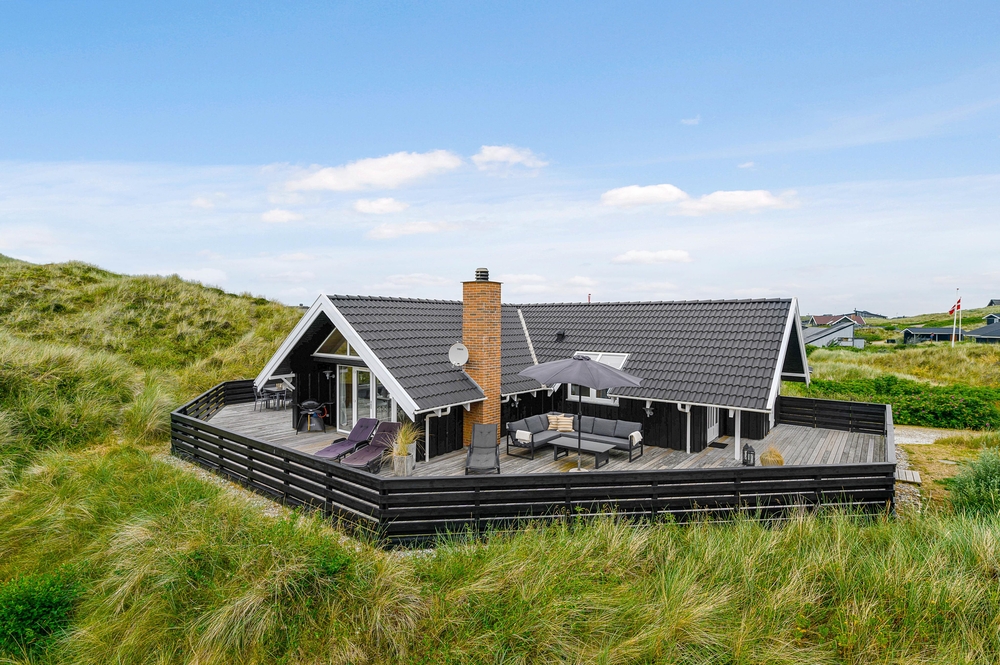 Ein schönes Ferienhaus im Hvidbjergvej 113, das auf einem Naturgrundstück in Søndervig liegt. Von hier sind es nur 250 Meter bis zur Nordsee. Es gibt eine geschlossene Terrasse nach Süden und Osten, auf der man sich fast den ganzen Tag aufhalten kann. Das Haus liegt an der äußersten Dünenreihe und ist sehr gepflegt.